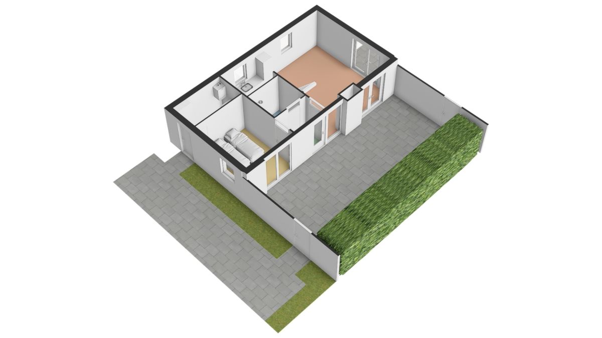 Indeling: Hal/entree met garderobe, toegang tot de woonkamer met open keuken, slaapkamer en de badkamer.