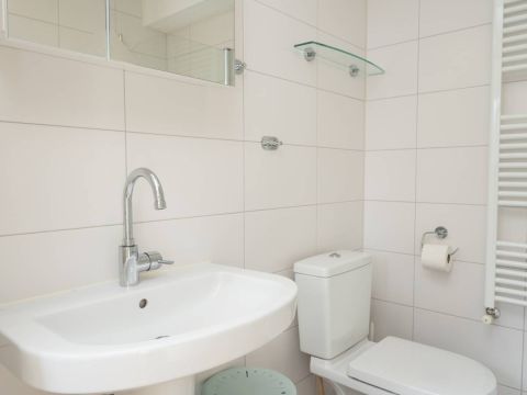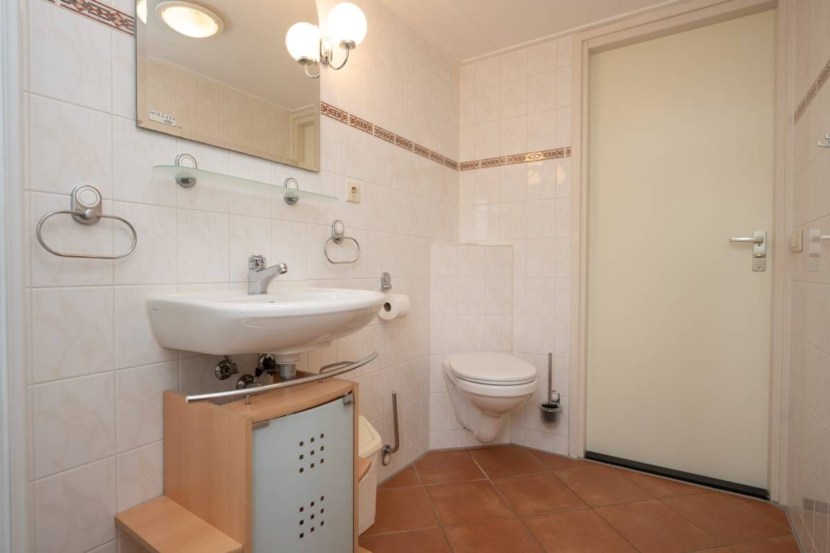 Op de begane grond is een 2-persoonsslaapkamer die een toegangsdeur heeft naar het terras, waar u ‘s ochtends heerlijk met een kopje koffie rustig de dag kunt opstarten en genieten. De nette badkamer op de begane grond is voorzien van een ligbad met instap douche, een wastafel, een toilet en een design radiator.