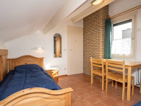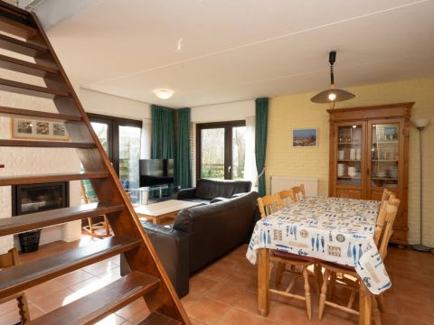 Indeling: Hal/entree, toegang tot de woonkamer, slaapkamer en badkamer. De woonkamer heeft een plavuizen vloer en een gezellige openhaard wat zorgt voor een knusse sfeer op de koudere dagen.