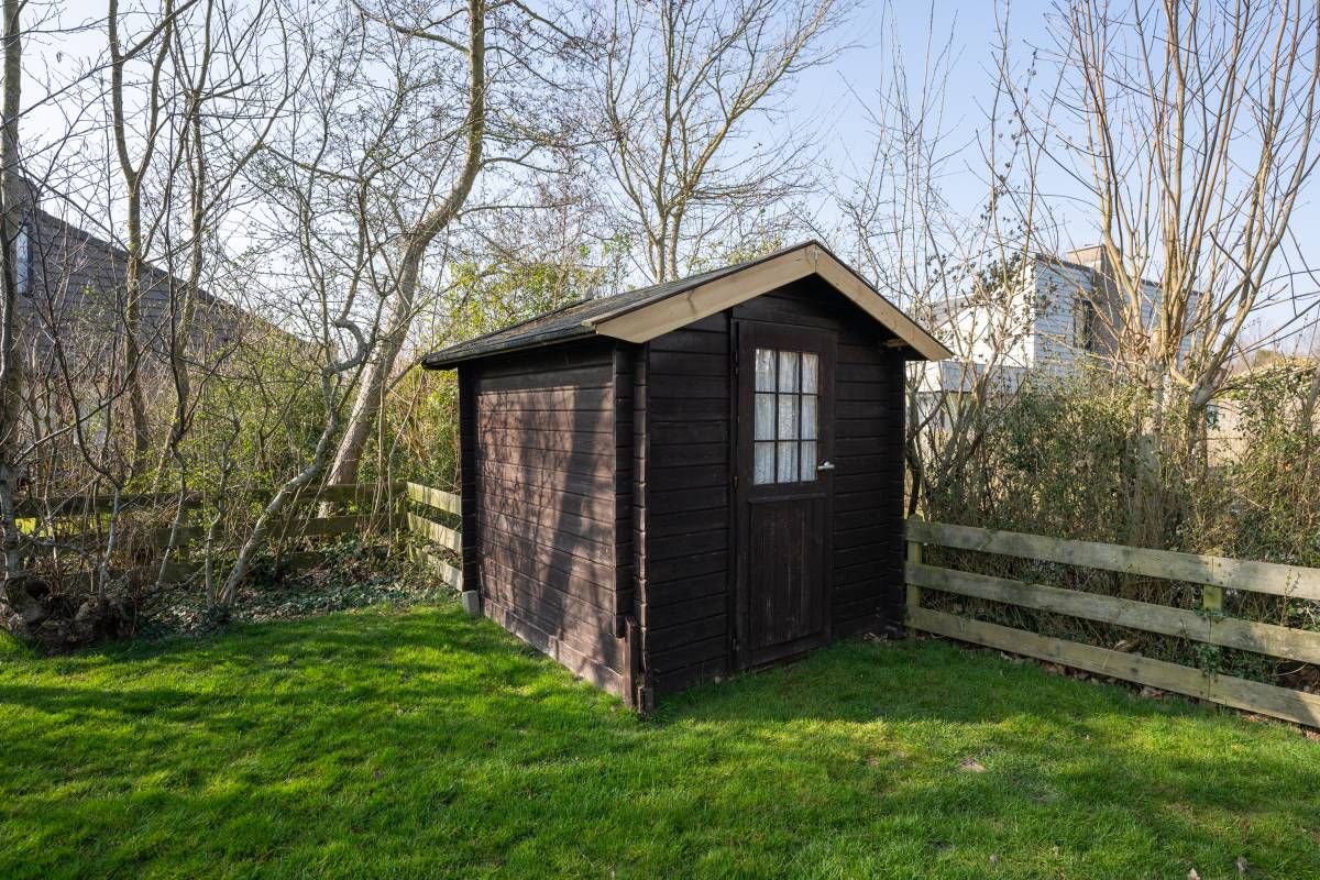 De woning beschikt over een inpandige berging waar zich de opstelplaats bevindt voor de HR CV-ketel en de wasmachine en tevens over een groot beschut terras en een royale tuin waar u heerlijke privé kunt vertoeven. Achter de woning een heerlijke groene tuin met een vrijstaand houten tuinhuisje.