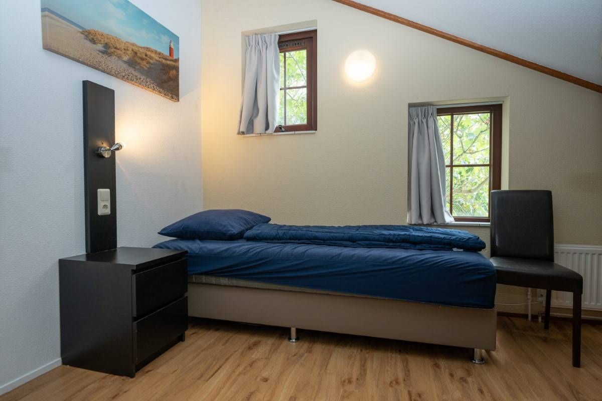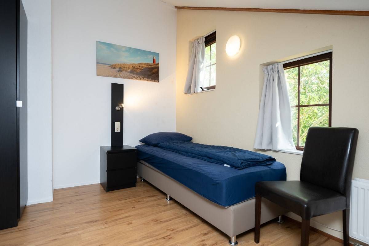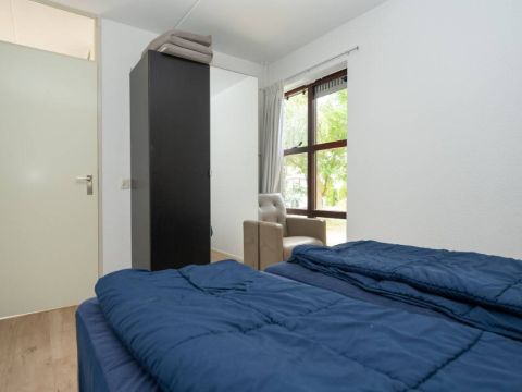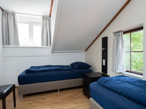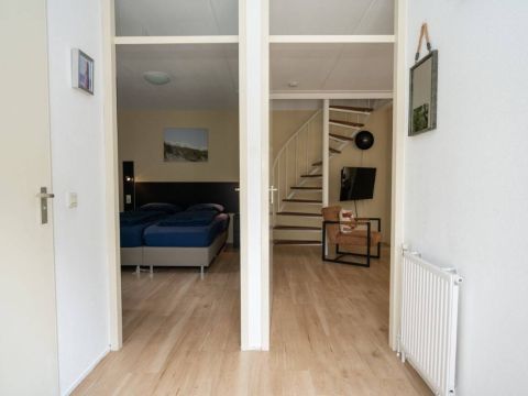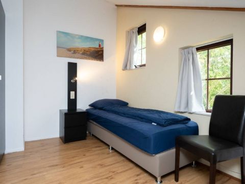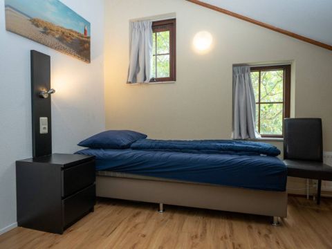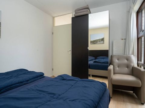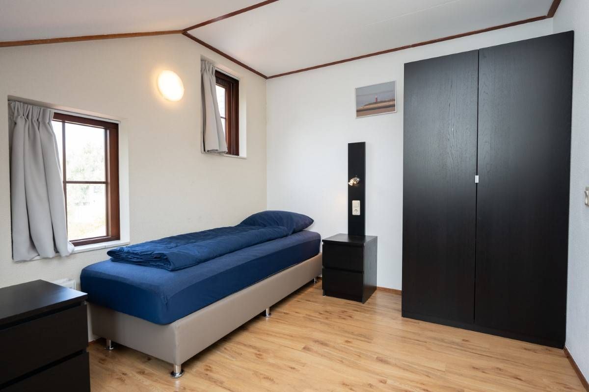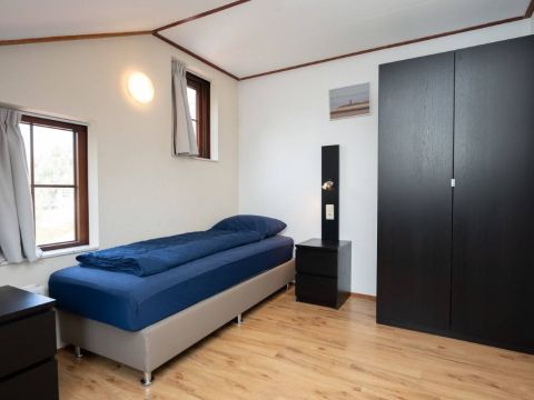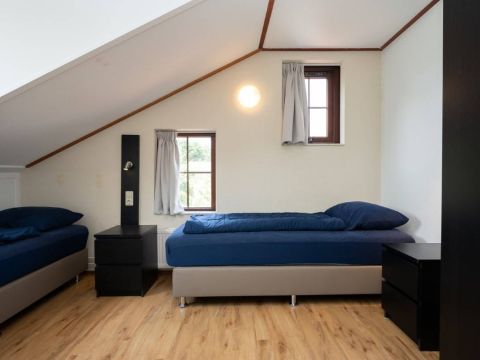 Op de begane grond bevindt zich een ruime slaapkamer met een tweepersoonsbed en voldoende kastruimte.