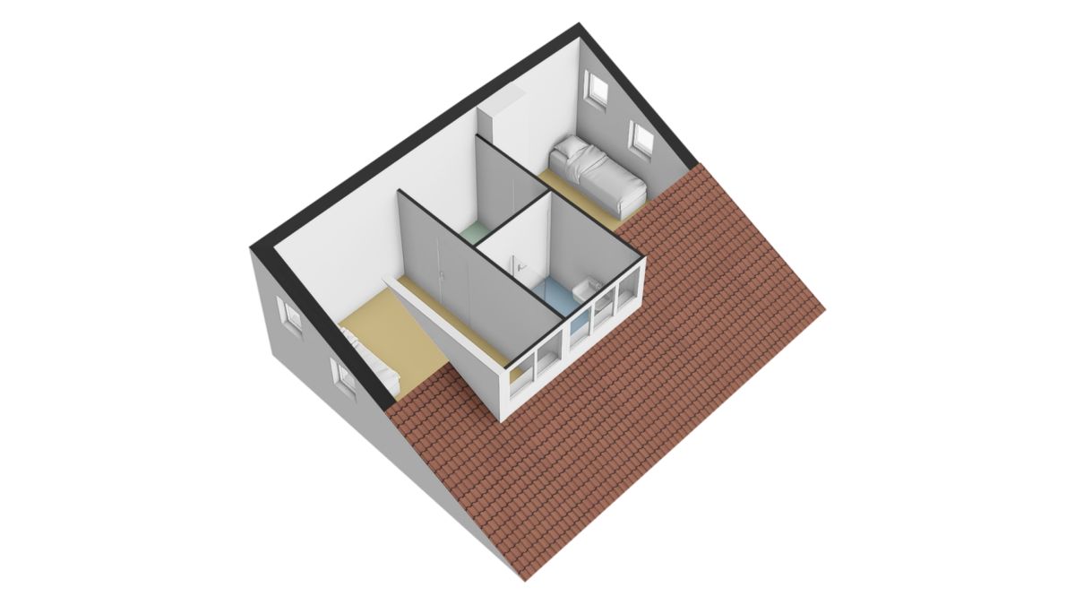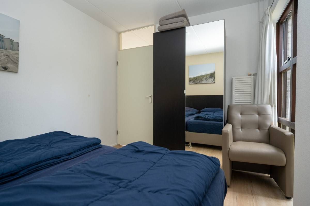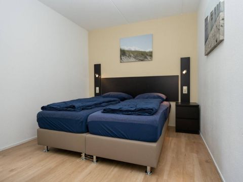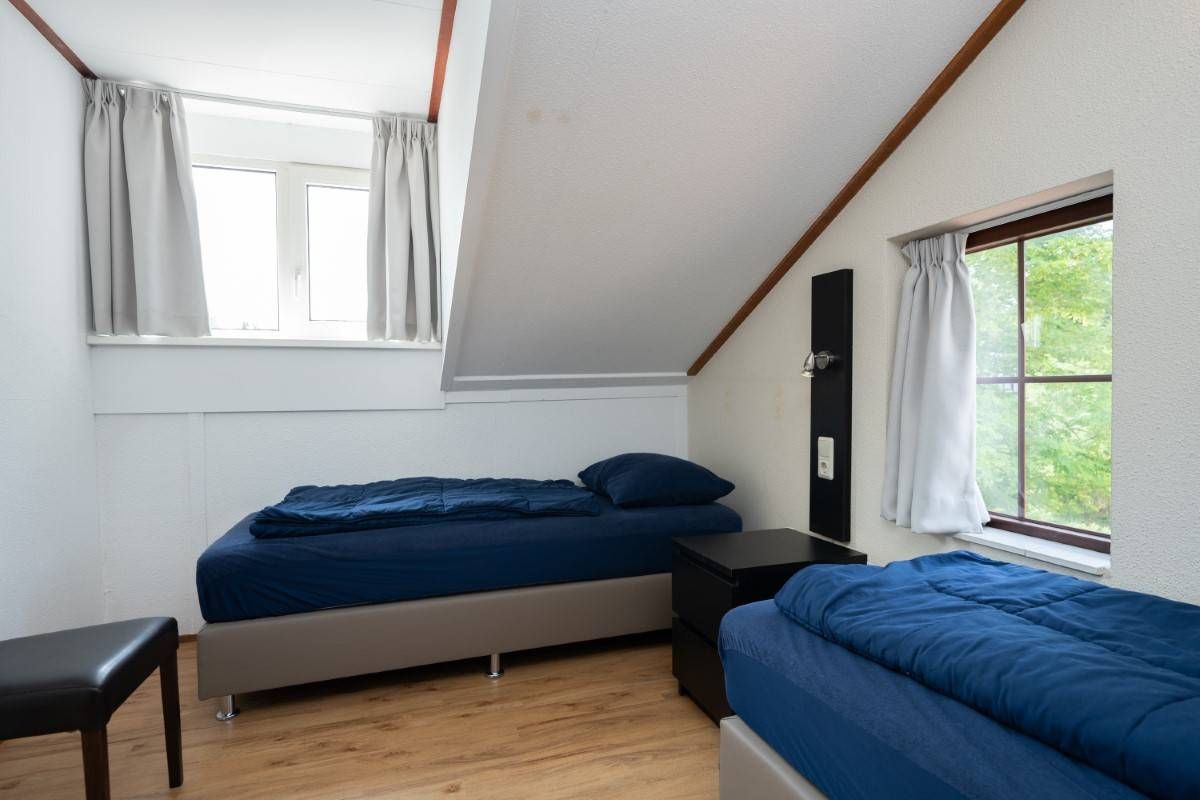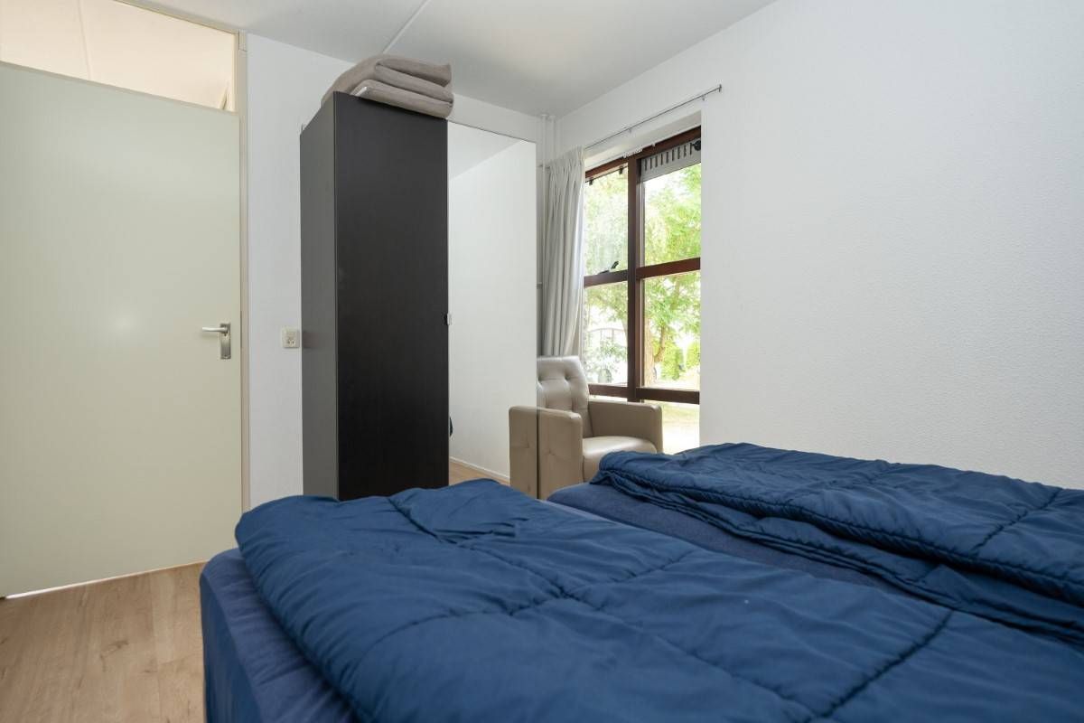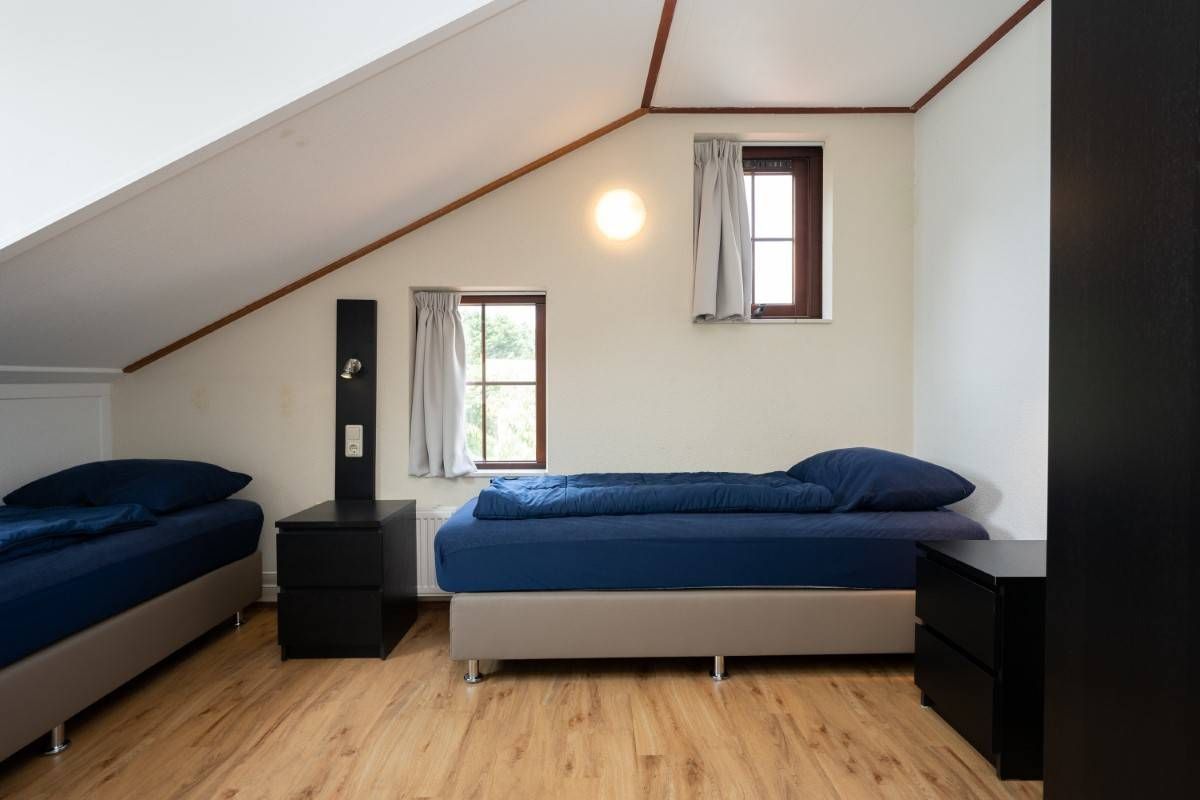 Op de begane grond bevindt zich een ruime slaapkamer met een tweepersoonsbed en voldoende kastruimte.