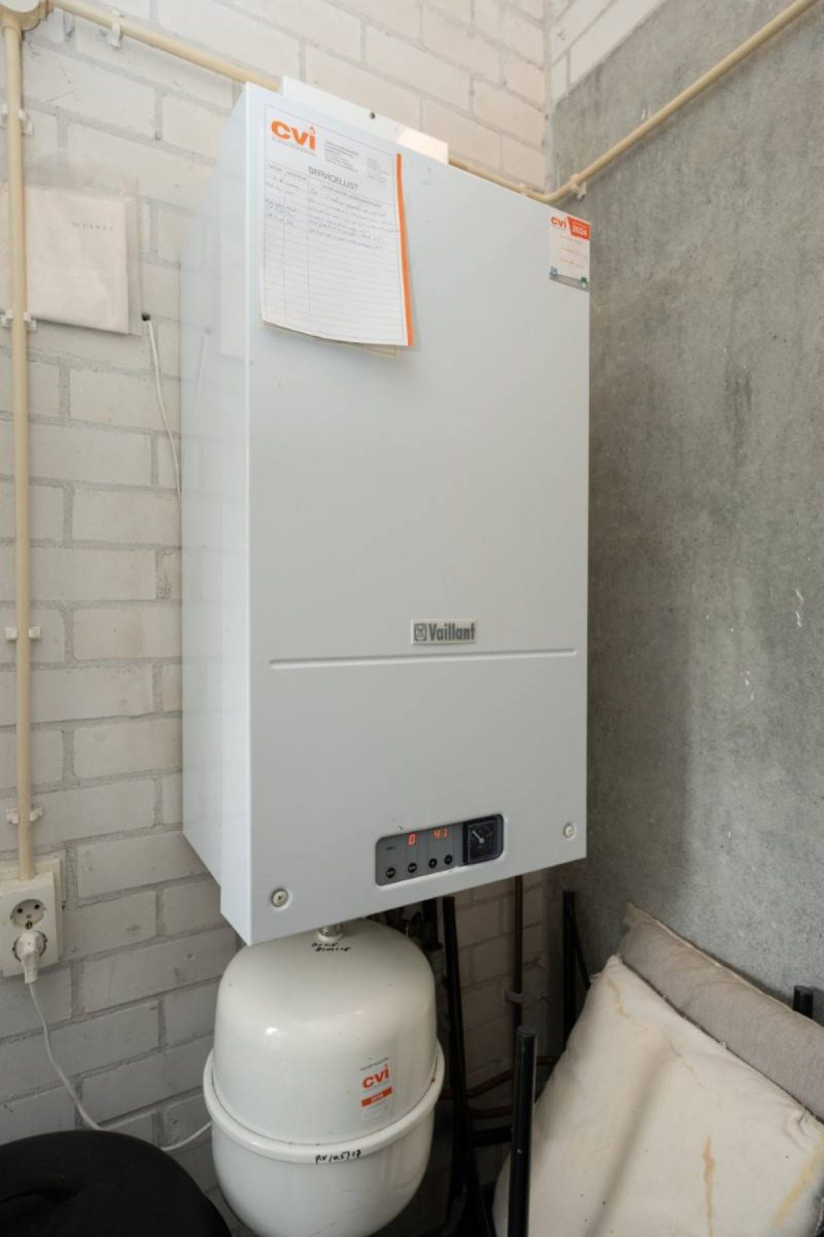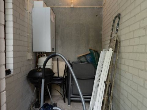In de inpandige berging is de opstelplaats aanwezig voor wassen/drogen, tevens bevindt zich hier de HR-CV ketel.