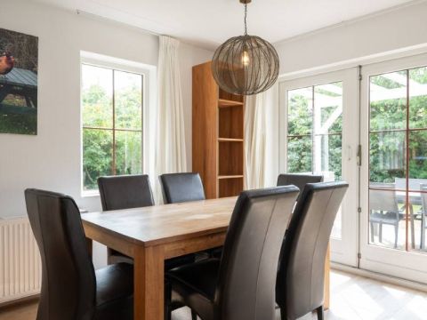 Middels de openslaande deuren doorloop naar de tuin en het terras. Hier begeeft u zich volledig in het groen.