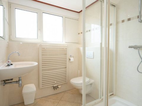 Vanuit de hal tevens toegang tot de keurige badkamer welke is voorzien van inloopdouche, wastafelmeubel en toilet.