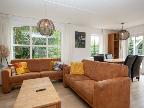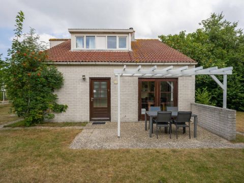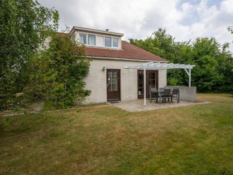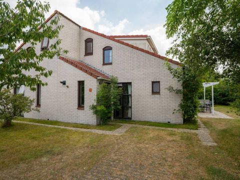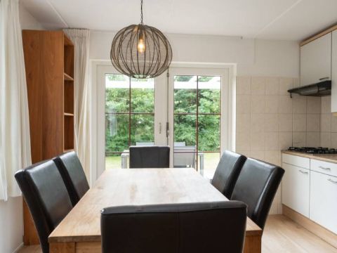 Heerlijk beschut gelegen op vakantiepark “De Krim”, een half vrijstaande keurig verzorgde bungalow (type D), op een perceel eigen grond van 389 m².
