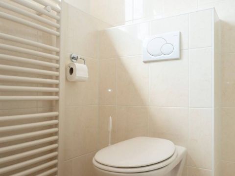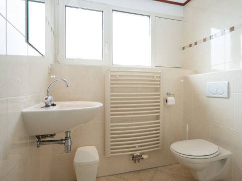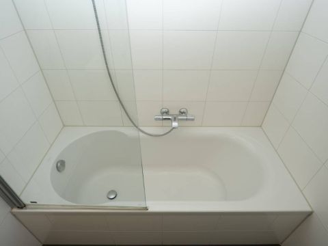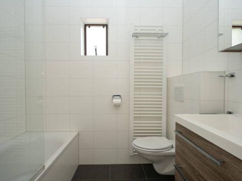 De tweede badkamer is ruim van opzet en beschikt over een ligbad met douche, wastafelmeubel, toilet en dakkapel.