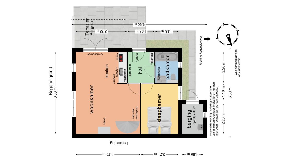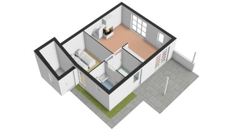 Indeling: Hal/entree met meterkast, toegang tot de gezellige woonkamer met open keuken, slaapkamer en de badkamer.