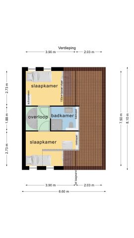 Op de verdieping vindt u twee fijne slaapkamers en een tweede badkamer.
