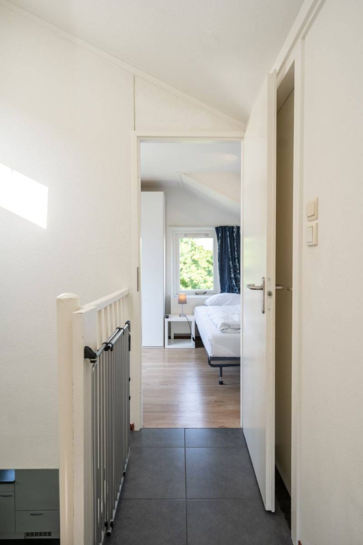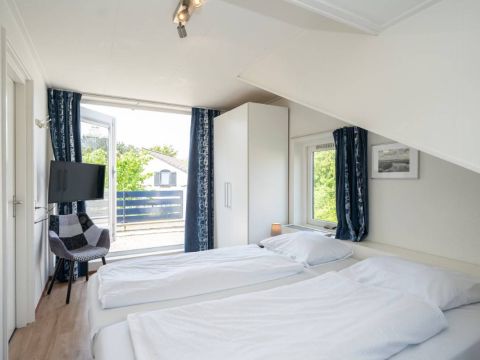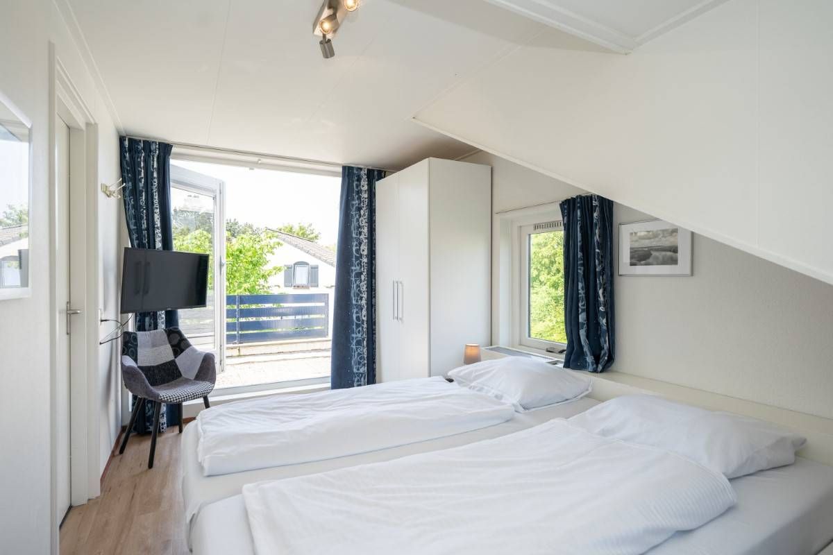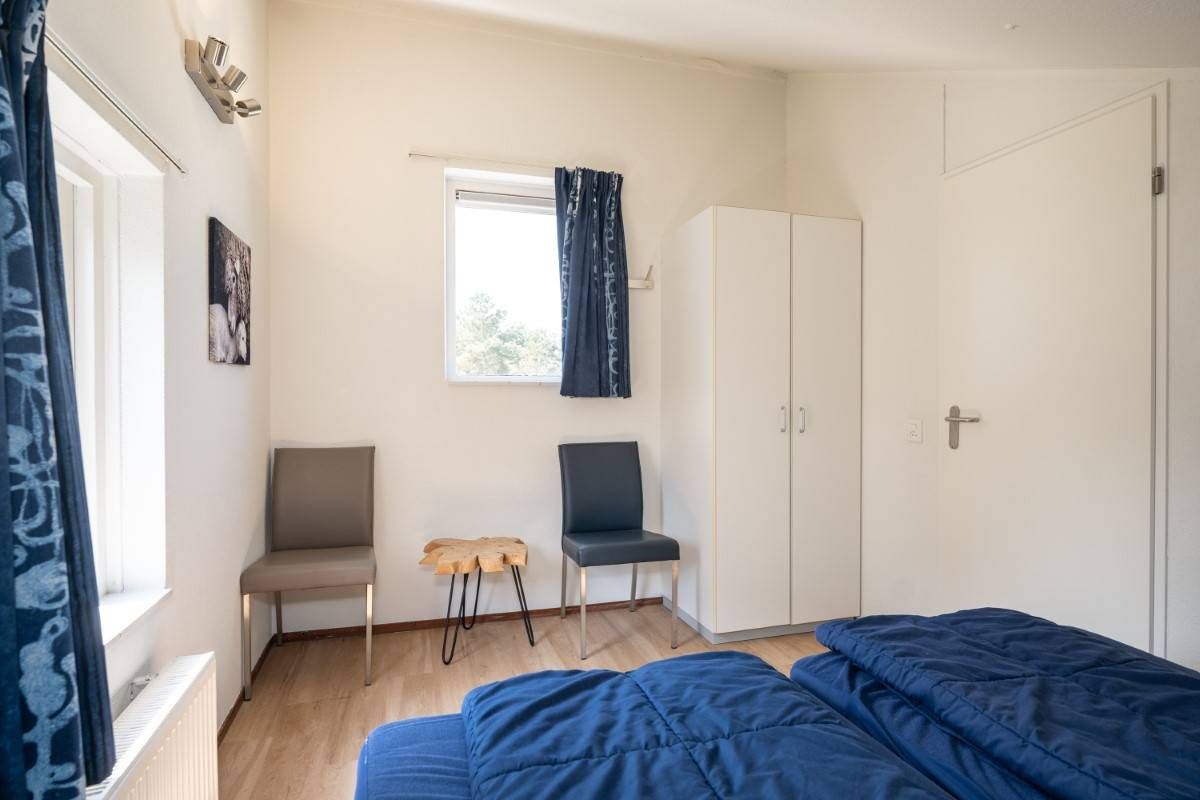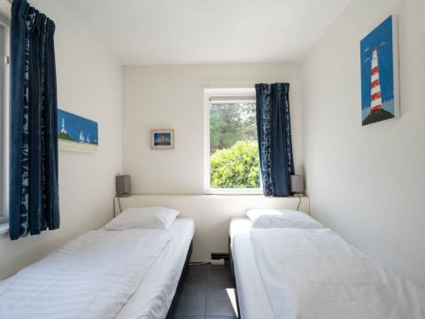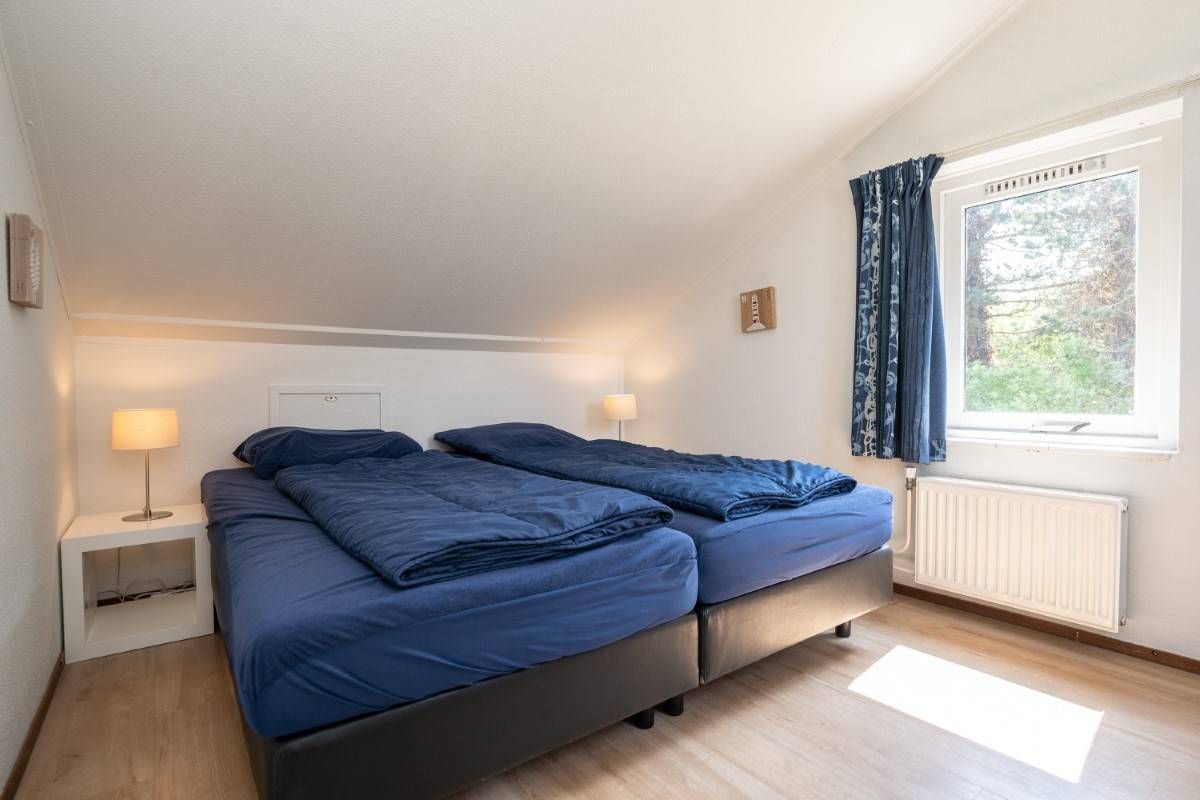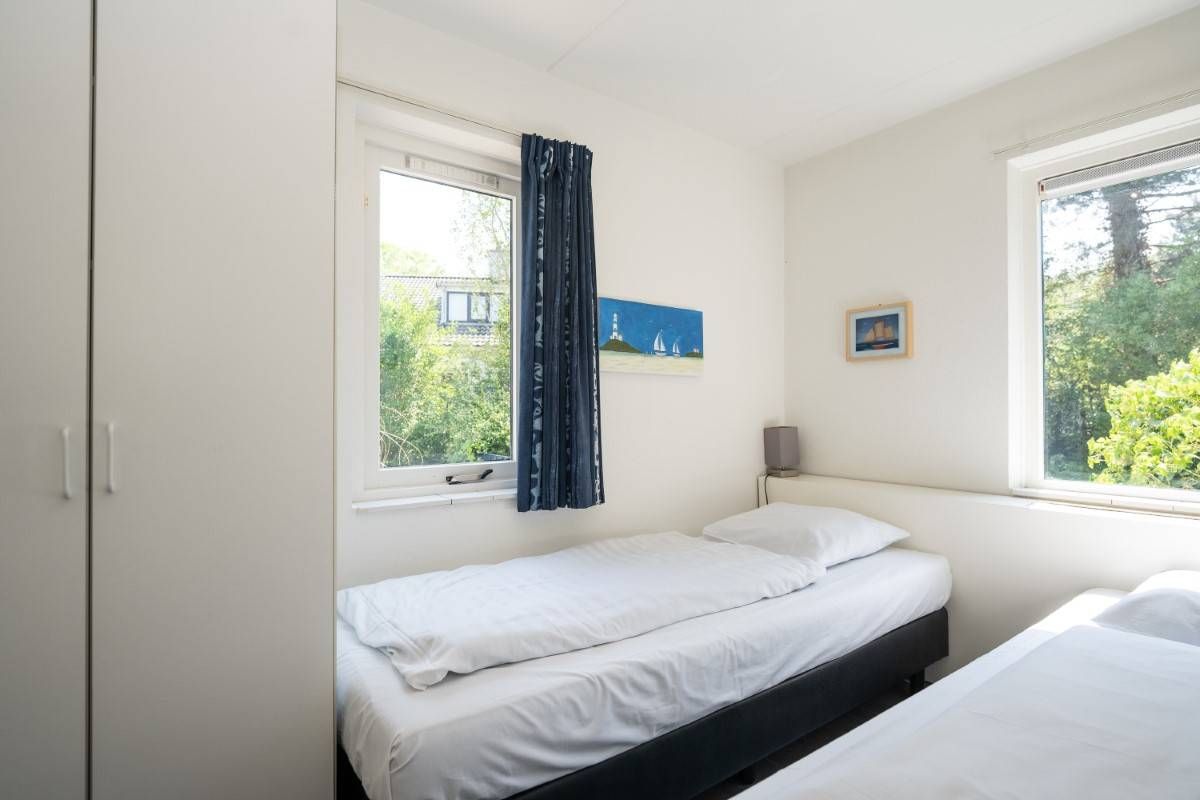 Op de begane grond vindt u een slaapkamer met twee eenpersoonsbedden en kastruimte.