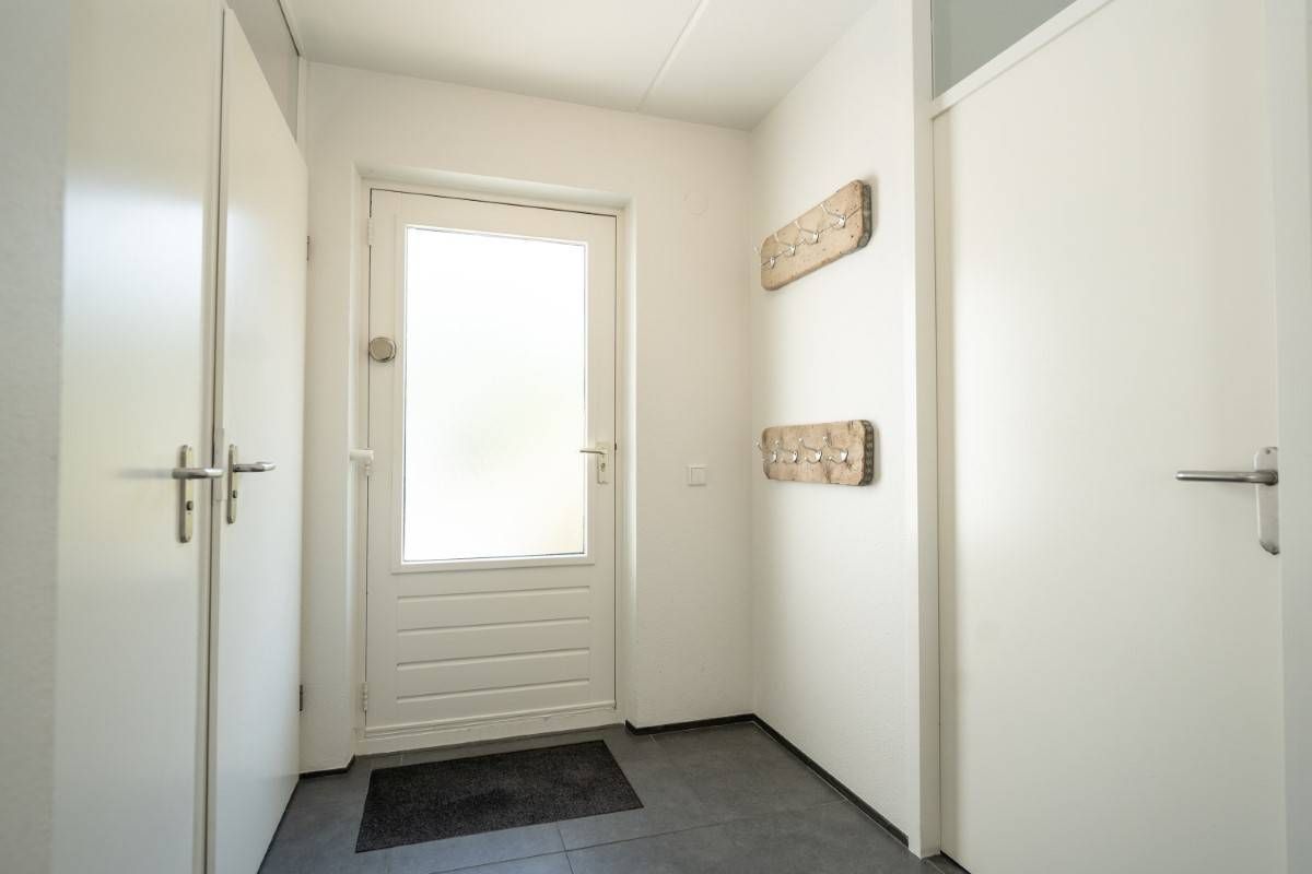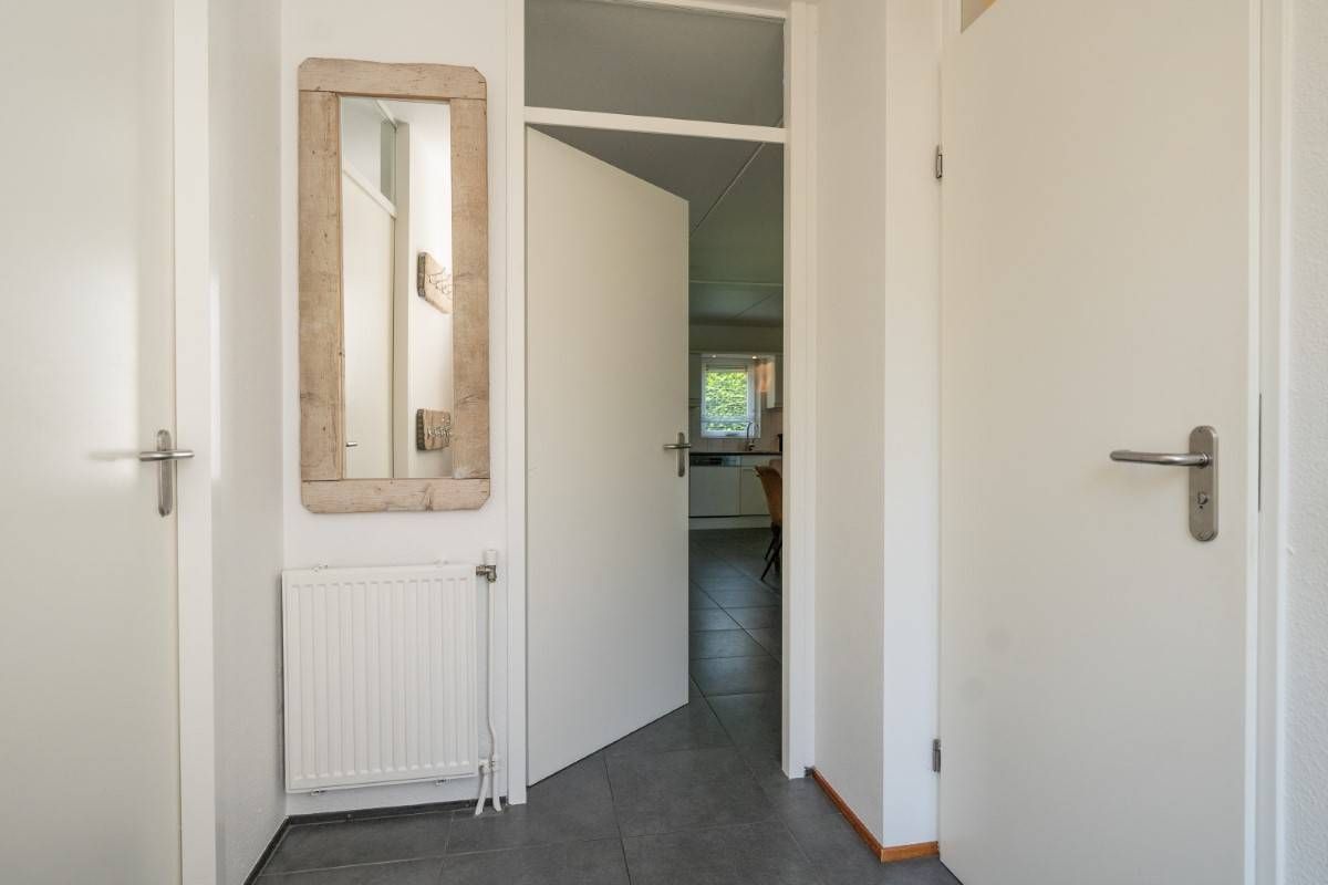 Vanuit de keuken doorloop naar de bijkeuken. Hier bevinden zich de wasmachine en droger, de cv-ketel én een extra koelkast. De bijkeuken is tevens buitenom bereikbaar.