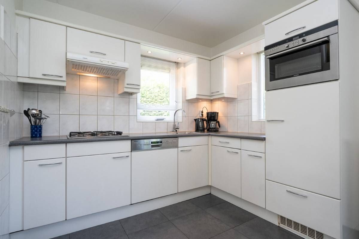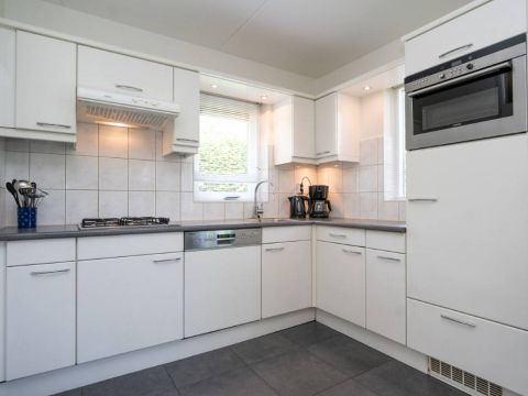 Aansluitend de keurige open keuken voorzien van diverse inbouwapparatuur o.a. vaatwasser, gaskookplaat, combimagnetron.