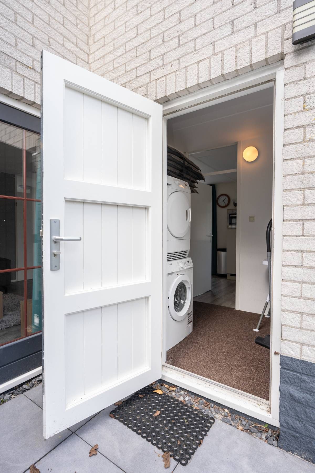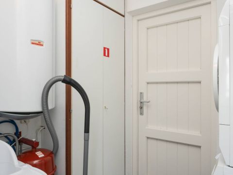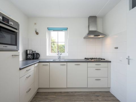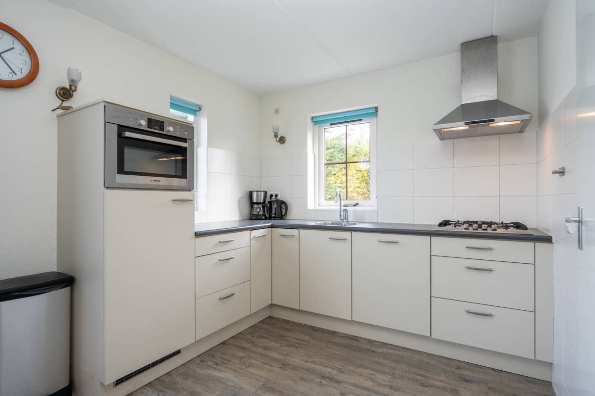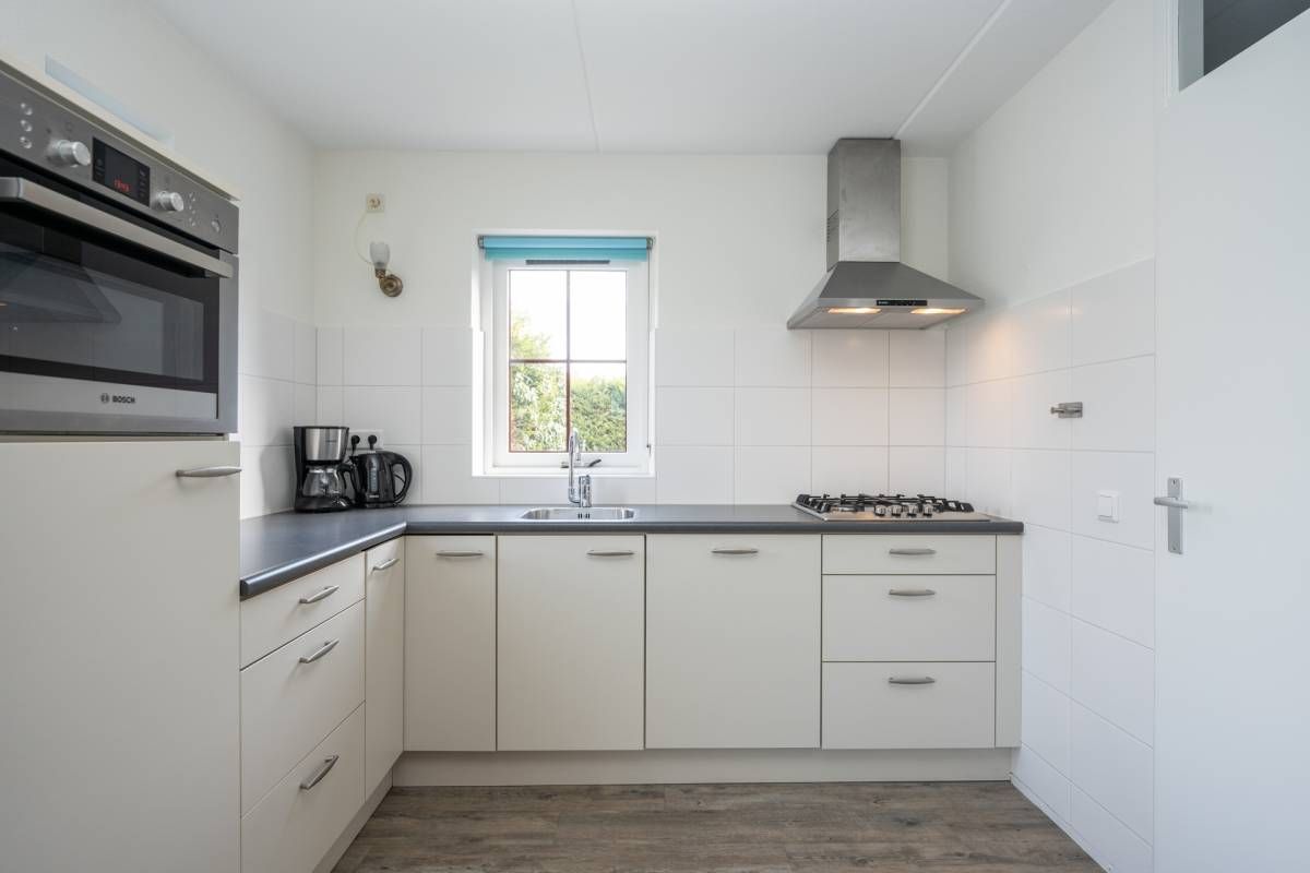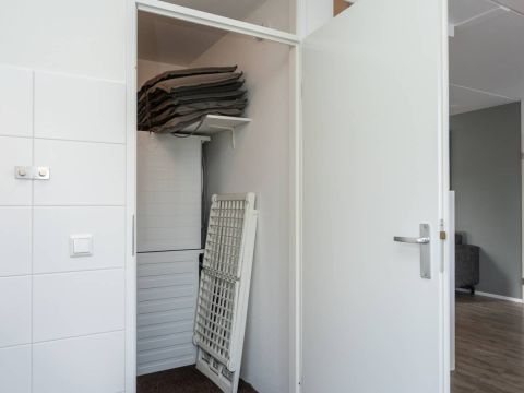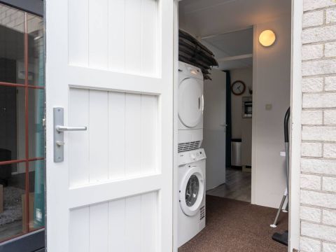 Vanuit de keuken doorloop naar de bijkeuken. Hier bevinden zich de wasmachine en droger en de cv-ketel. De bijkeuken is tevens buitenom bereikbaar.