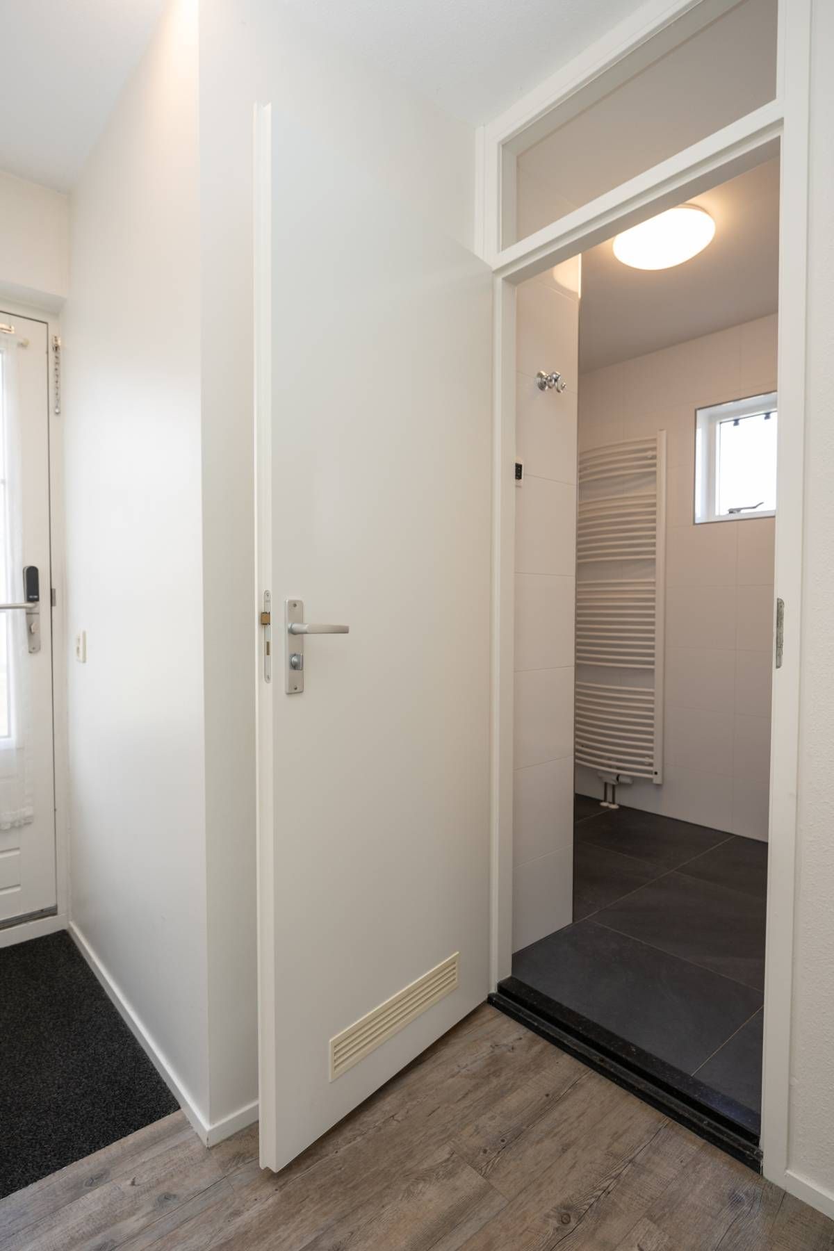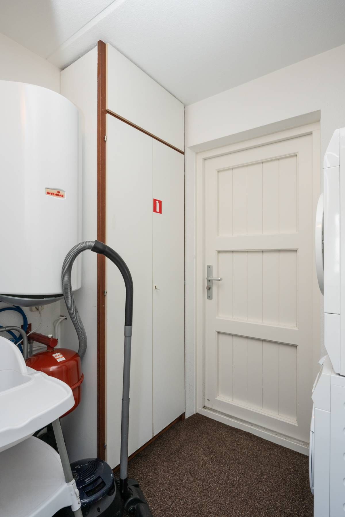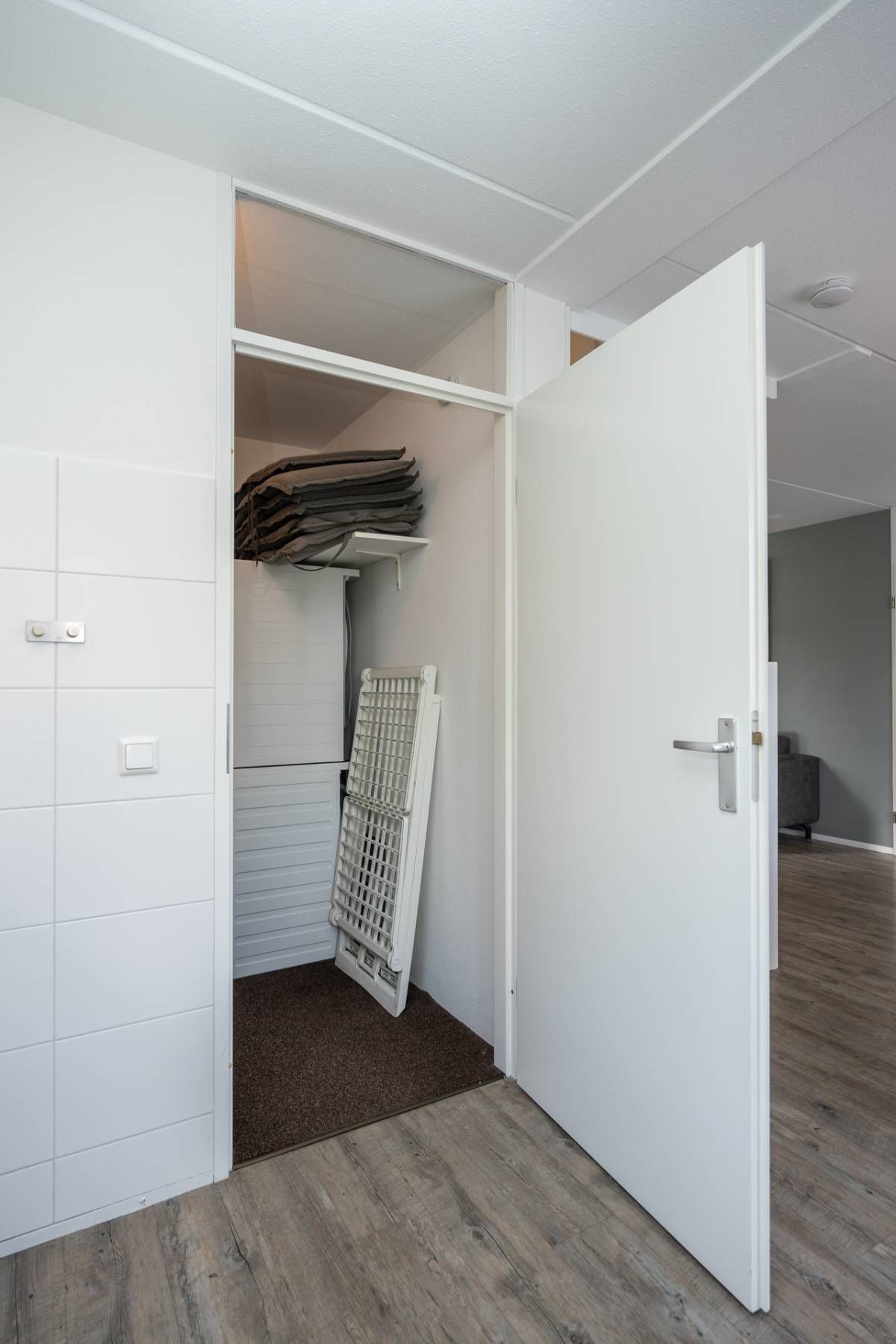 Vanuit de keuken doorloop naar de bijkeuken. Hier bevinden zich de wasmachine en droger en de cv-ketel. De bijkeuken is tevens buitenom bereikbaar.