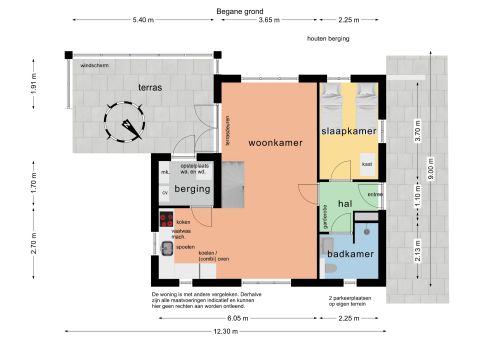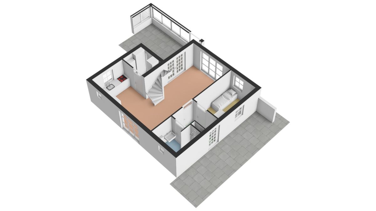 Indeling | De entree bevindt zich aan de zijkant van de woning. Vanuit de hal is er toegang tot de woonkamer, badkamer en slaapkamer op de begane grond.