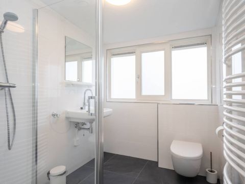 Op de verdieping een tweede luxe badkamer welke beschikt over een douchecabine, wastafel en toilet.