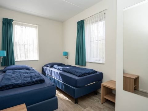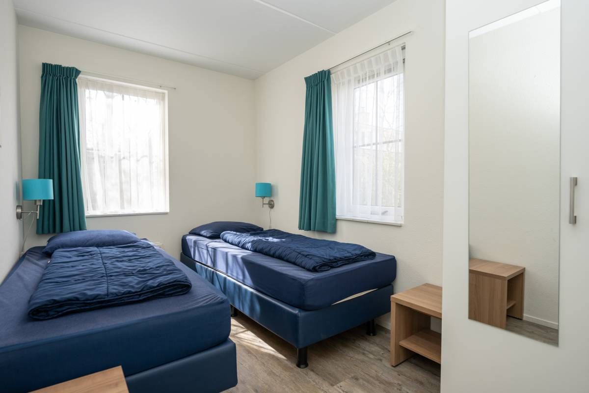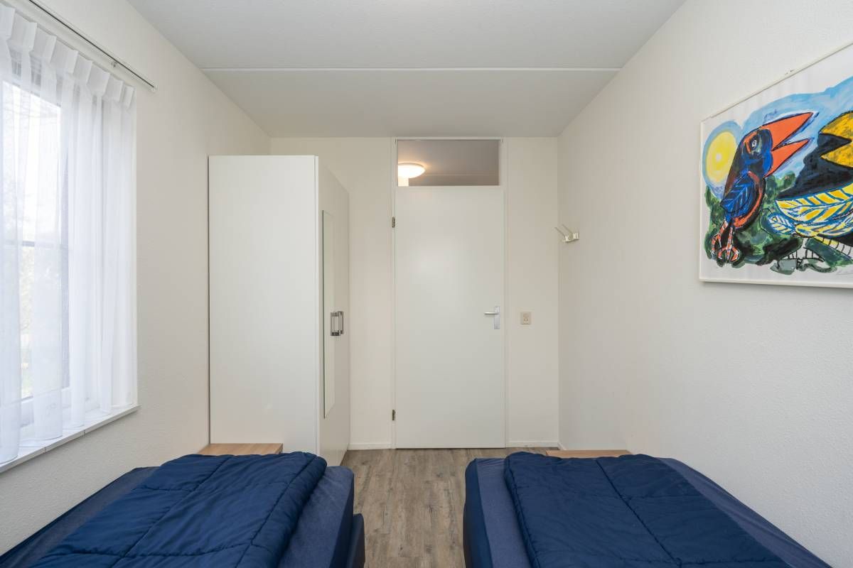 Op de begane grond vindt u een slaapkamer met twee eenpersoonsbedden en kastruimte.