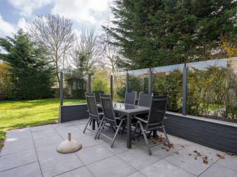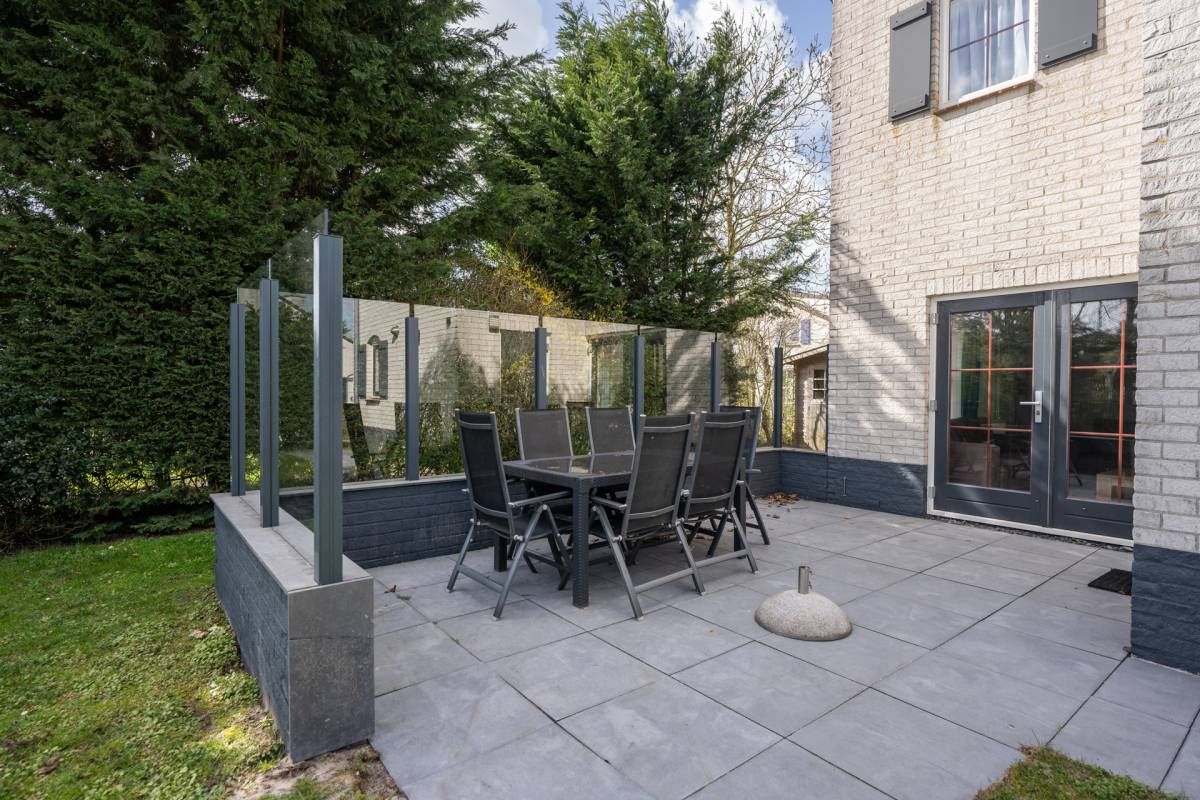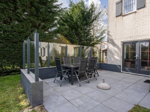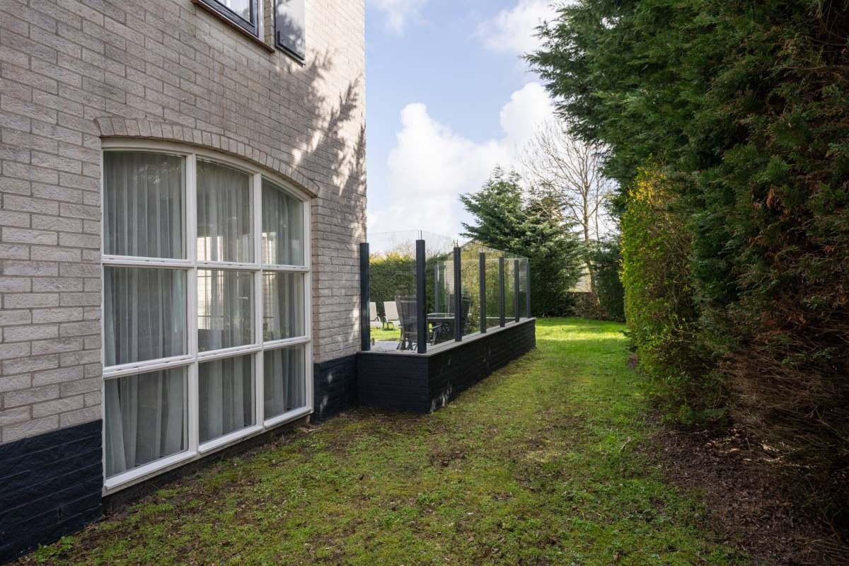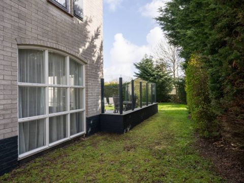 Op het royale (beschutte) terras is het heerlijk genieten van de zon. Maar wordt het u te warm dan zijn er ook diverse schaduwplekken te vinden. Het terras is grotendeels omringd door een glazen winscherm.