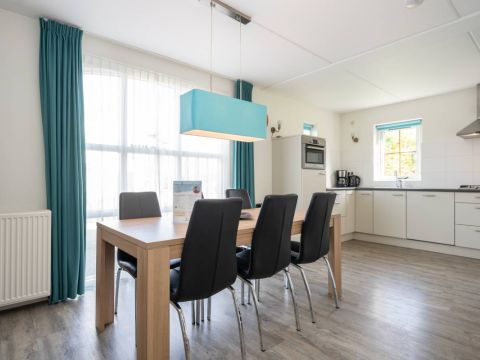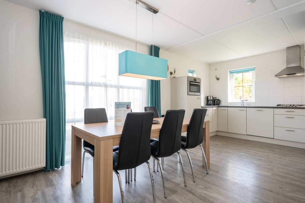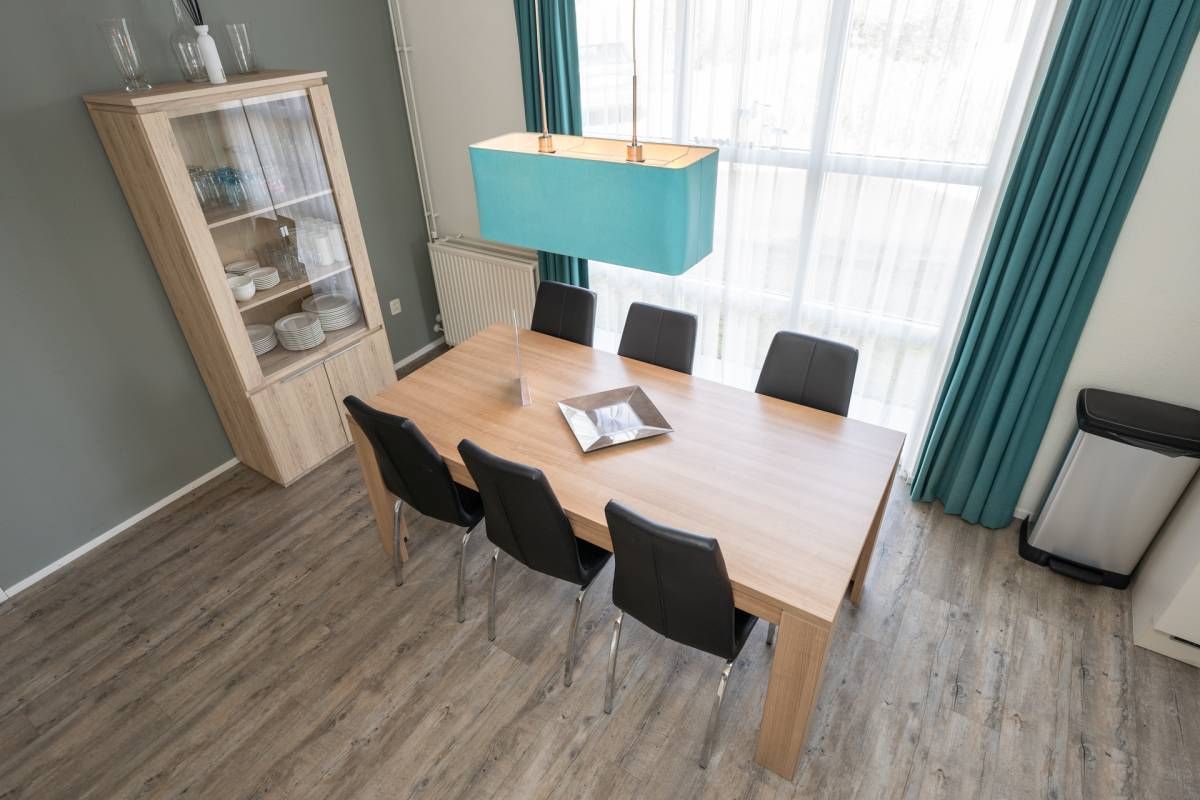 De eethoek sluit aan op de open keuken. De keuken is modern uitgevoerd en voorzien van diverse inbouwapparatuur, met voldoende werk- en opbergruimte.