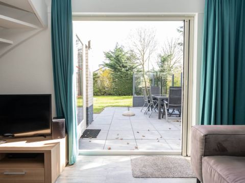De tuingerichte woonkamer heeft een mooie lichtinval, is smaakvol ingericht. Middels de openslaande deuren bereikt u het beschutte terras waar u ook heerlijk kunt zitten.