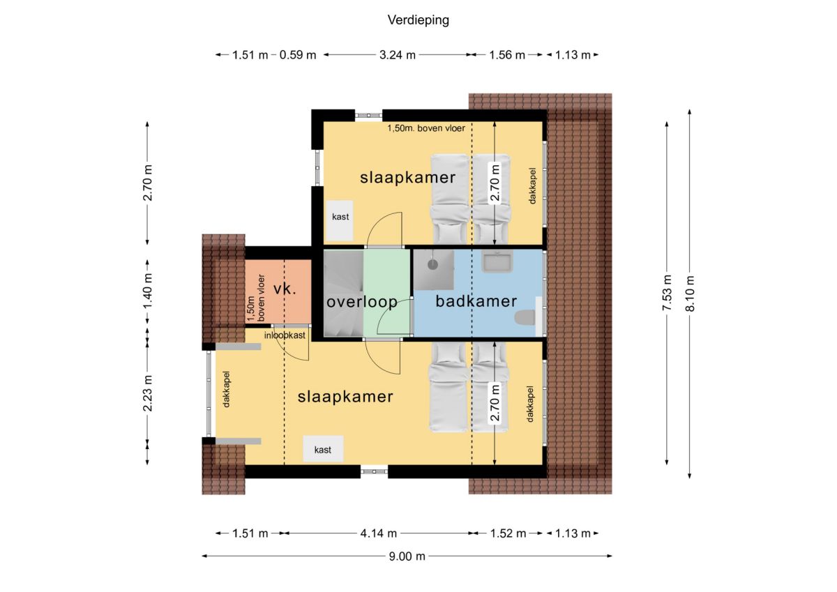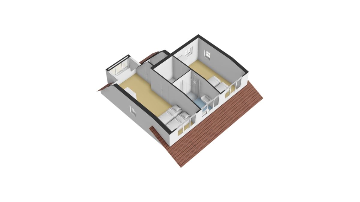 Via de trapopgang bereikt u de overloop van de verdieping. Hier treft u twee riante slaapkamers. De verdieping is ruim opgezet en voorzien van dakkapellen aan beide zijden, wat zorgt voor extra ruimte en licht.