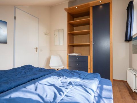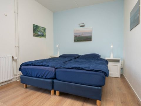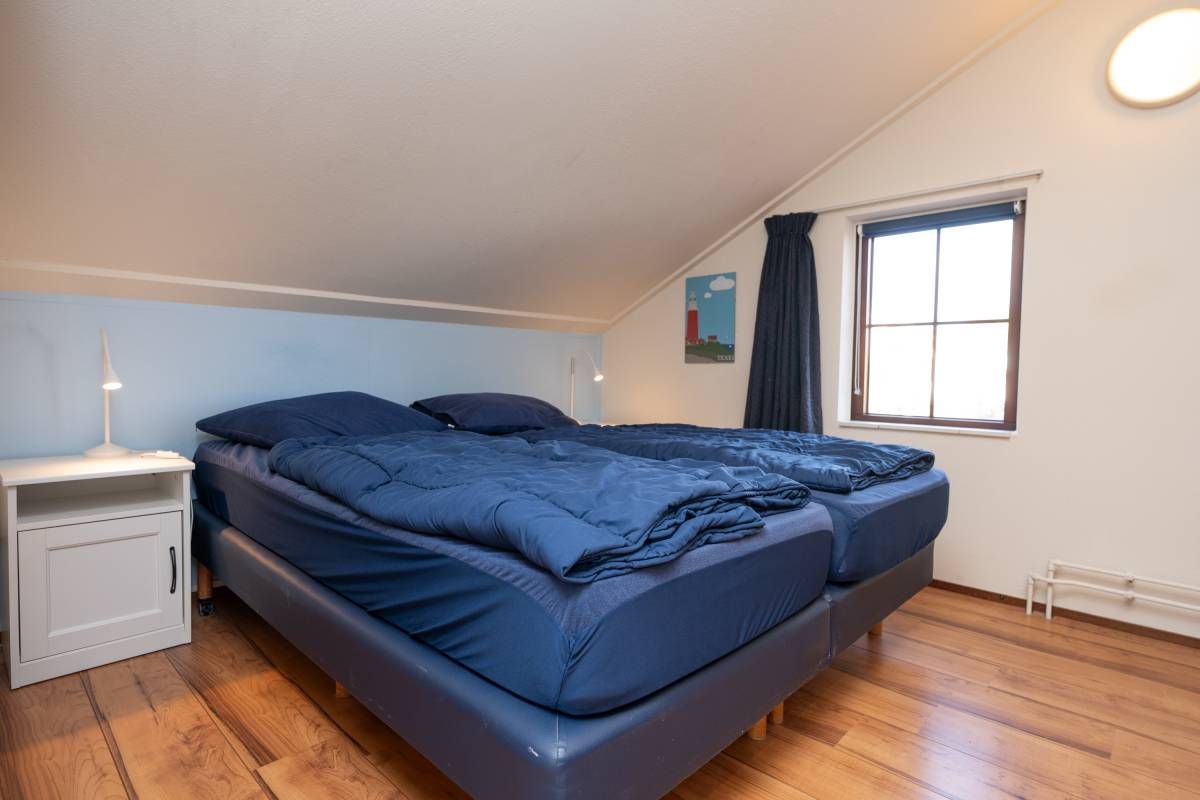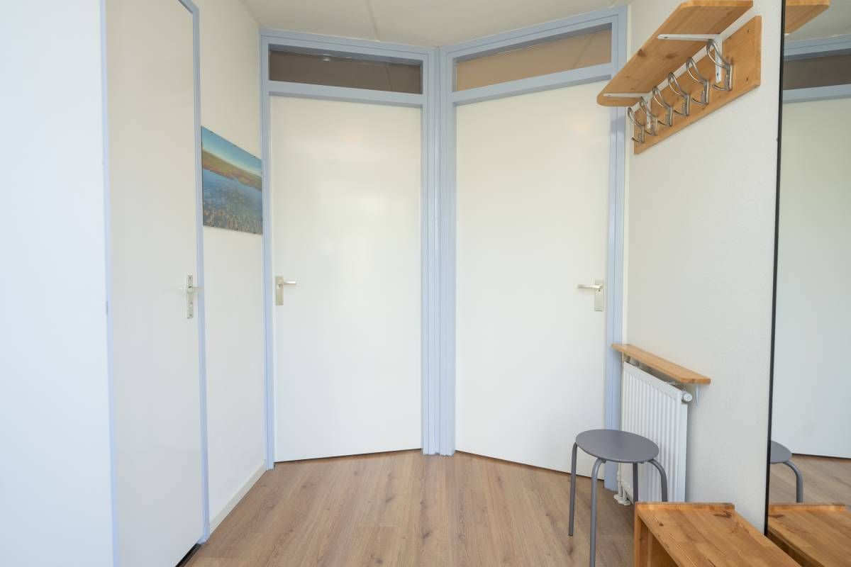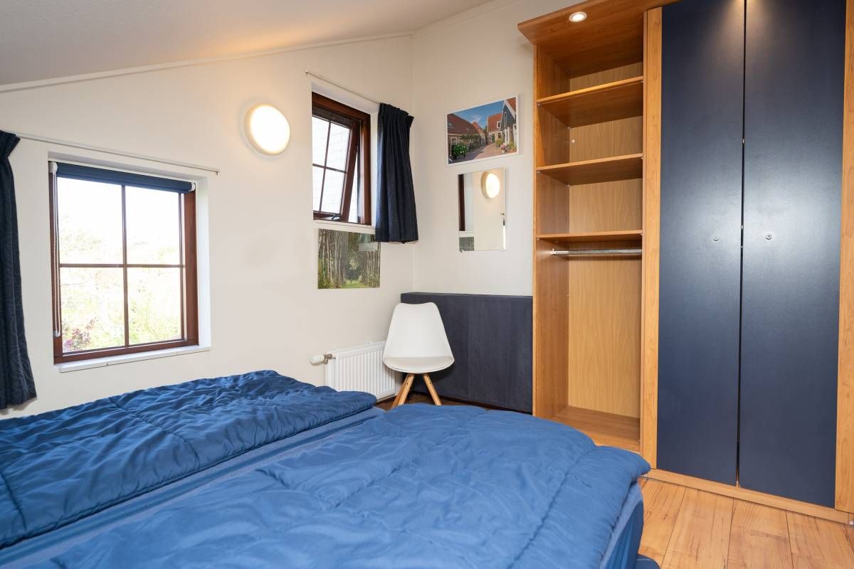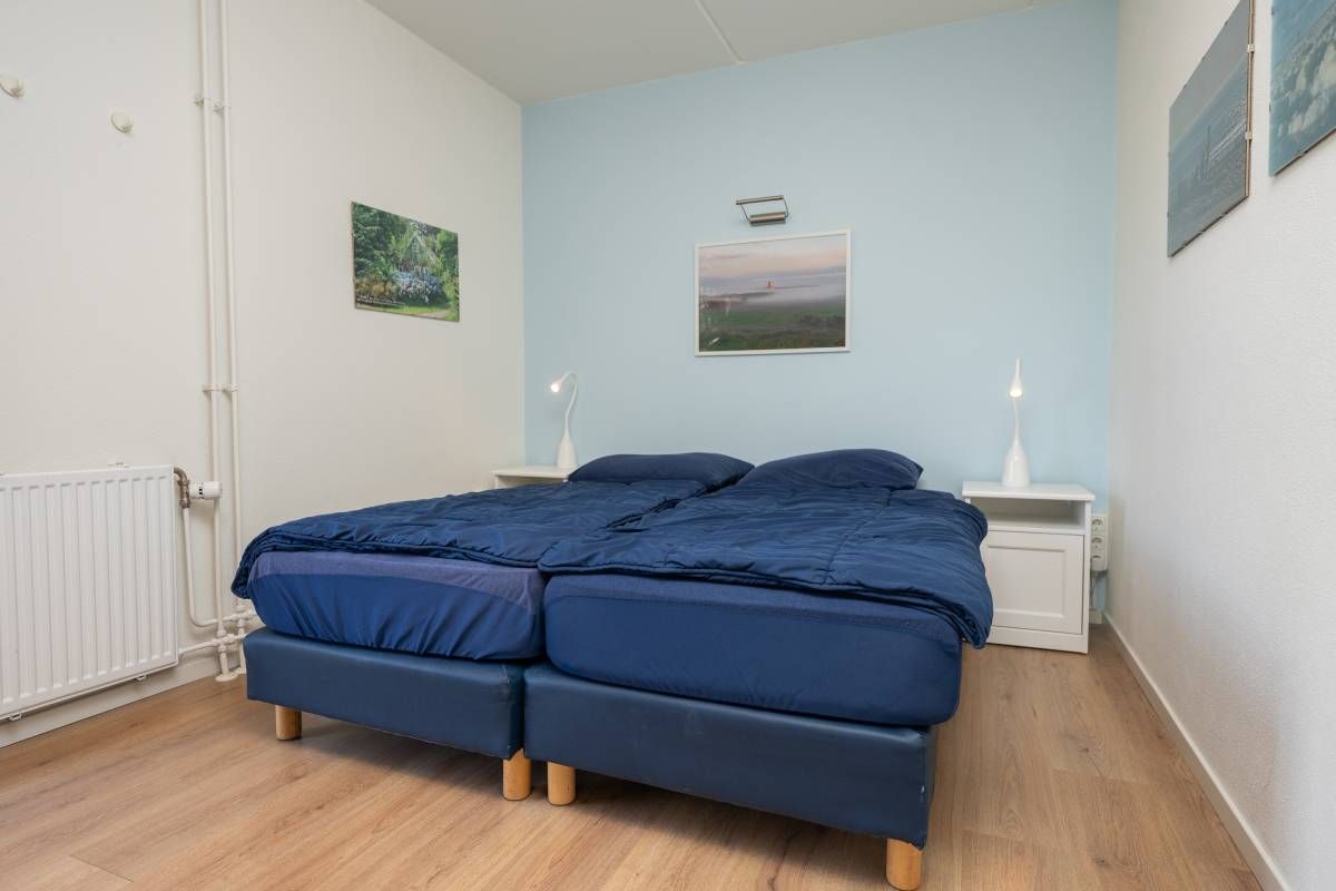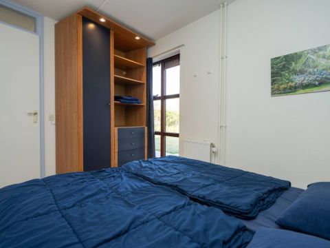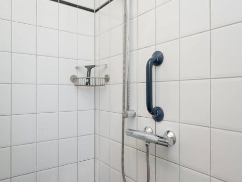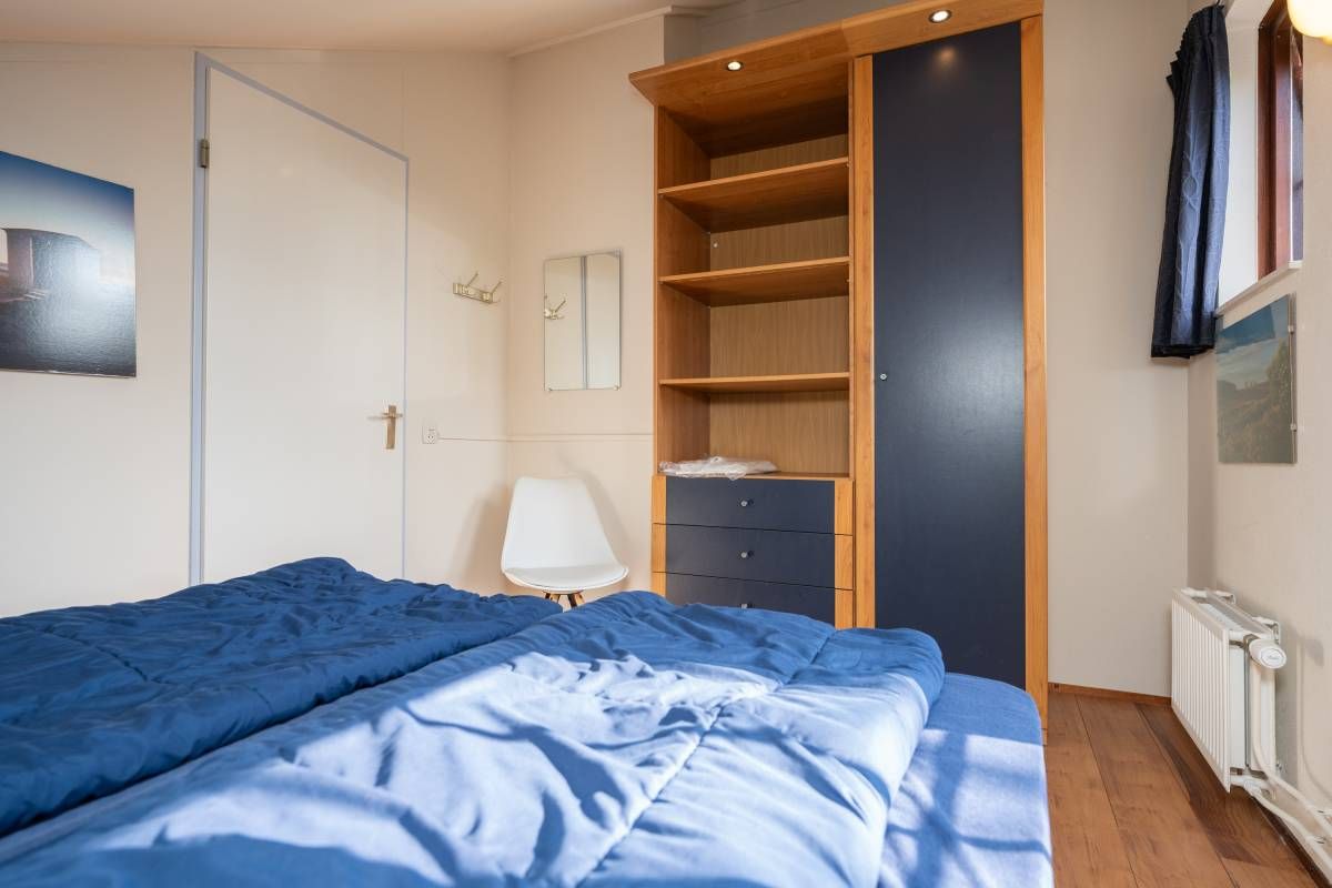 De tweepersoons slaapkamer met extra brede deur en de aangepaste badkamer maken deze woning uitermate geschikt voor minder validen.