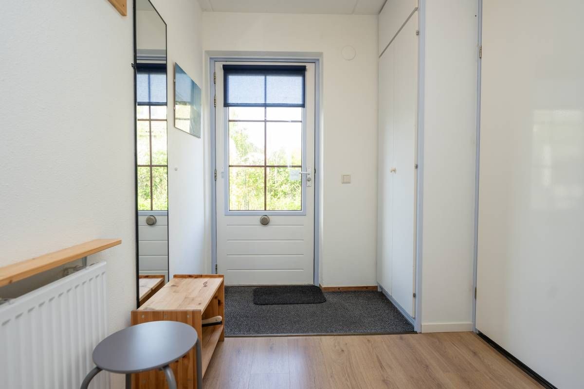 Indeling | U komt binnen in de hal met toegang tot de badkamer met douche, toilet en wastafelmeubel, een tweepersoons slaapkamer en de gezellige woonkamer met open keuken. De frisse woonkamer heeft een heerlijke lichtinval en via de openslaande deuren heeft u toegang tot het terras en de groene tuin.