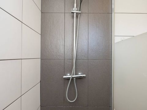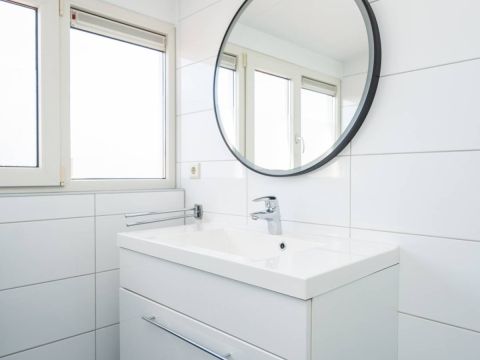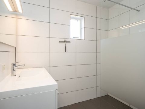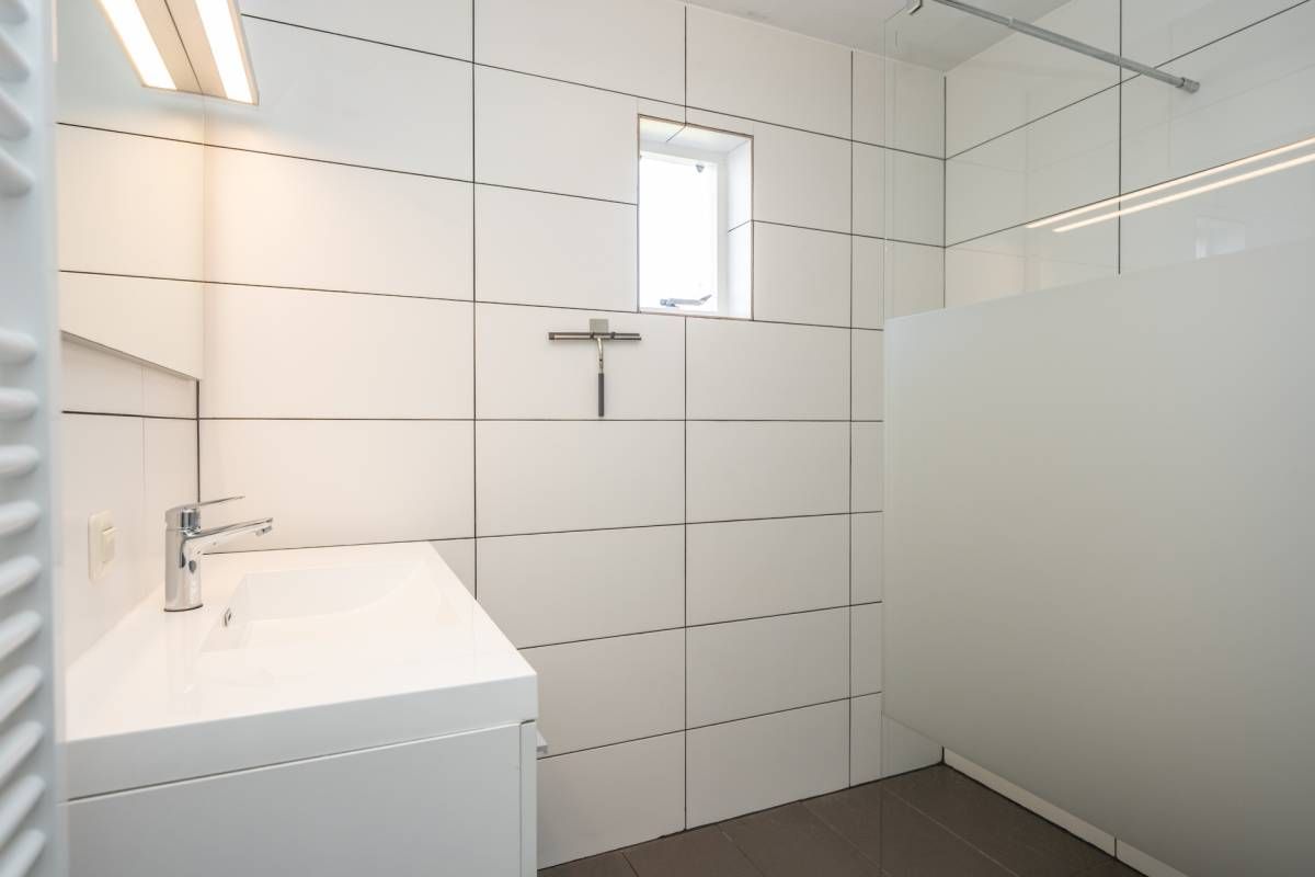 Op de verdieping is een dakkapel geplaatst waar zich de badkamer bevindt. Deze is uitgerust met een comfortabele douchecabine, een modern wastafelmeubel en een toilet.