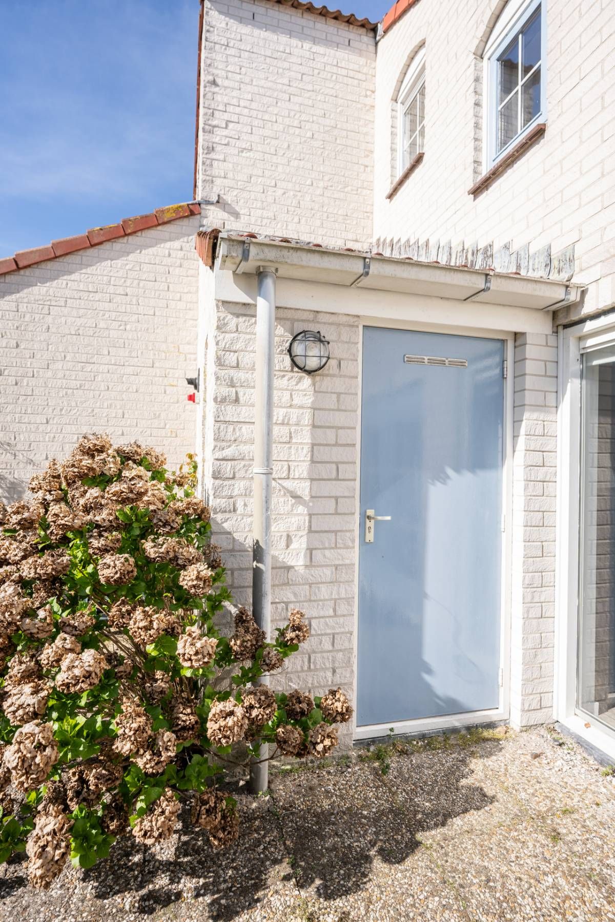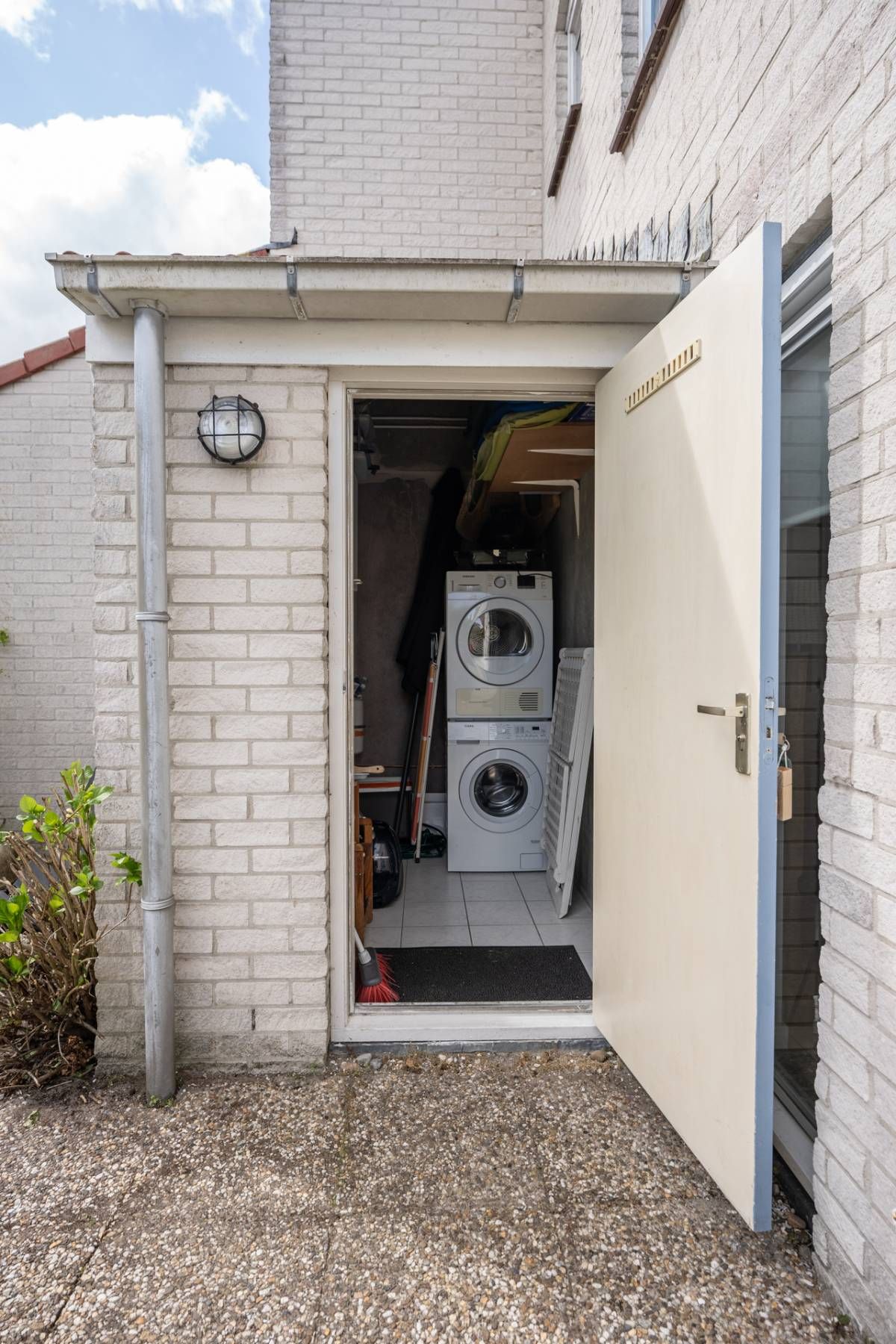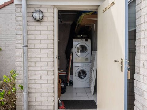 De ruime berging is buitenom bereikbaar, hier bevindt zich de cv ketel en de opstelplaats voor de wasmachine en de droger.