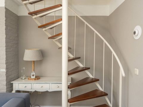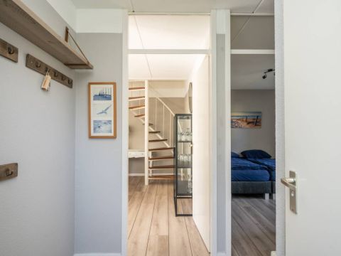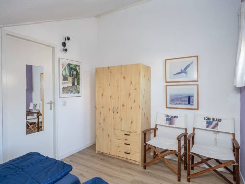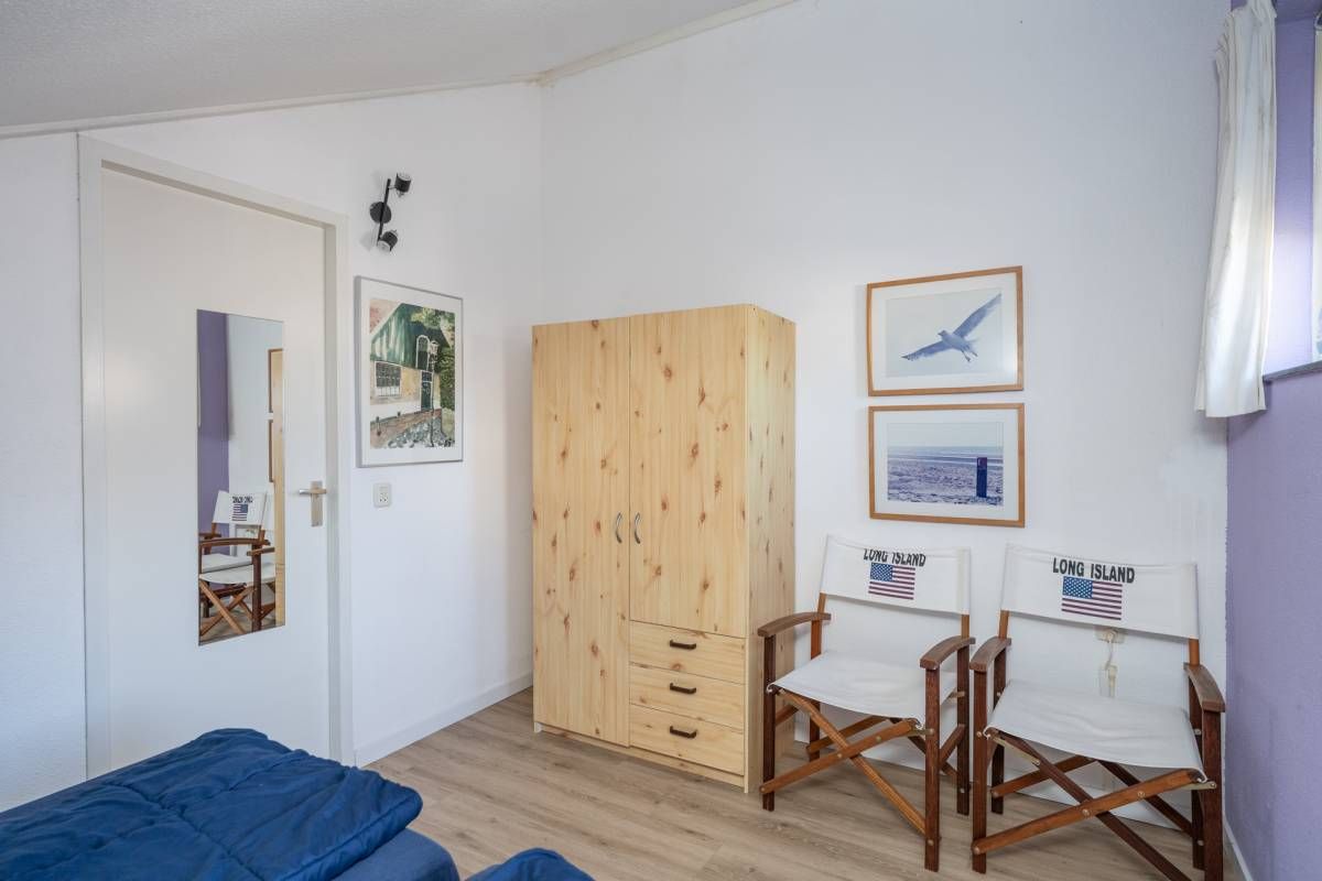 Achter de bedden op de verdieping is praktische bergruimte via luik aanwezig, bereikbaar via een luik.