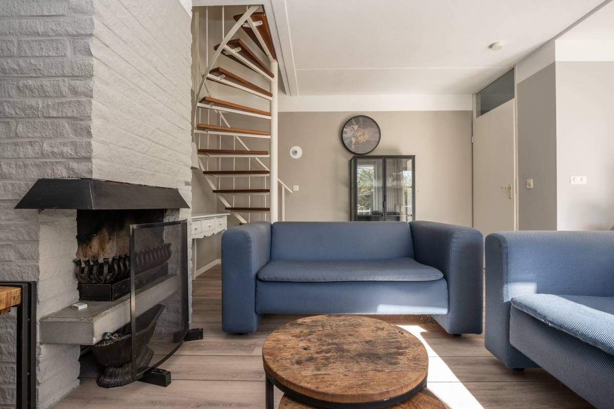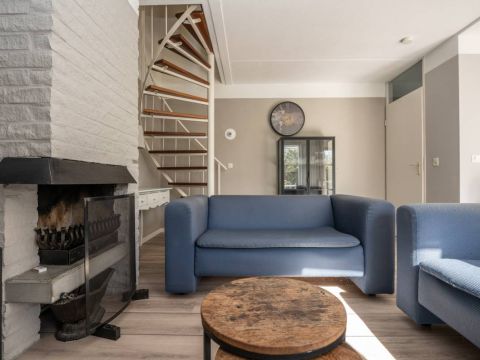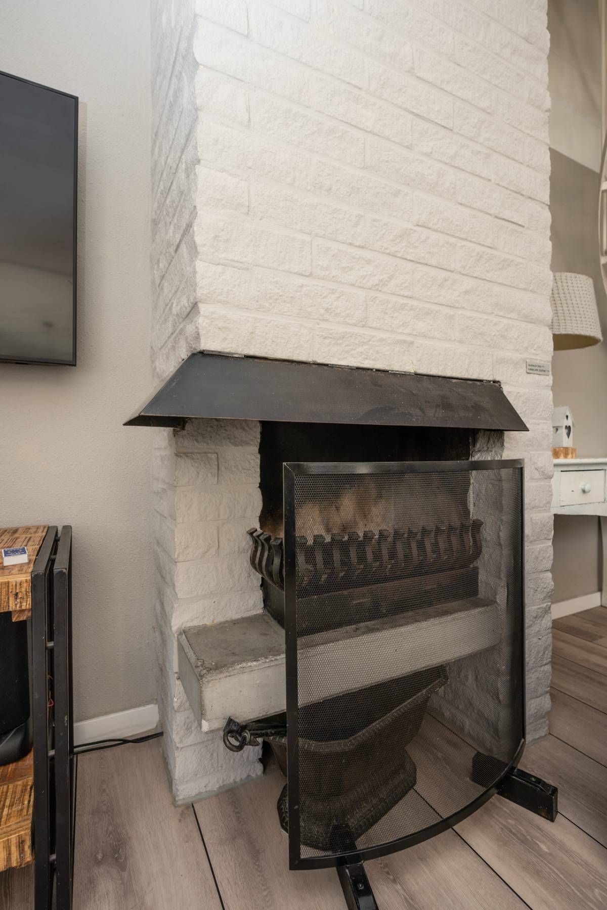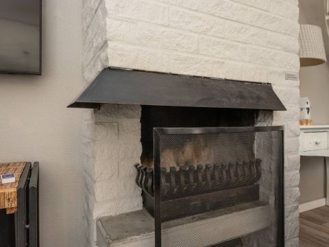 De open haard, gecombineerd met de naastgelegen tv, vormt een warm en gezellig middelpunt, ideaal voor de koelere dagen.
