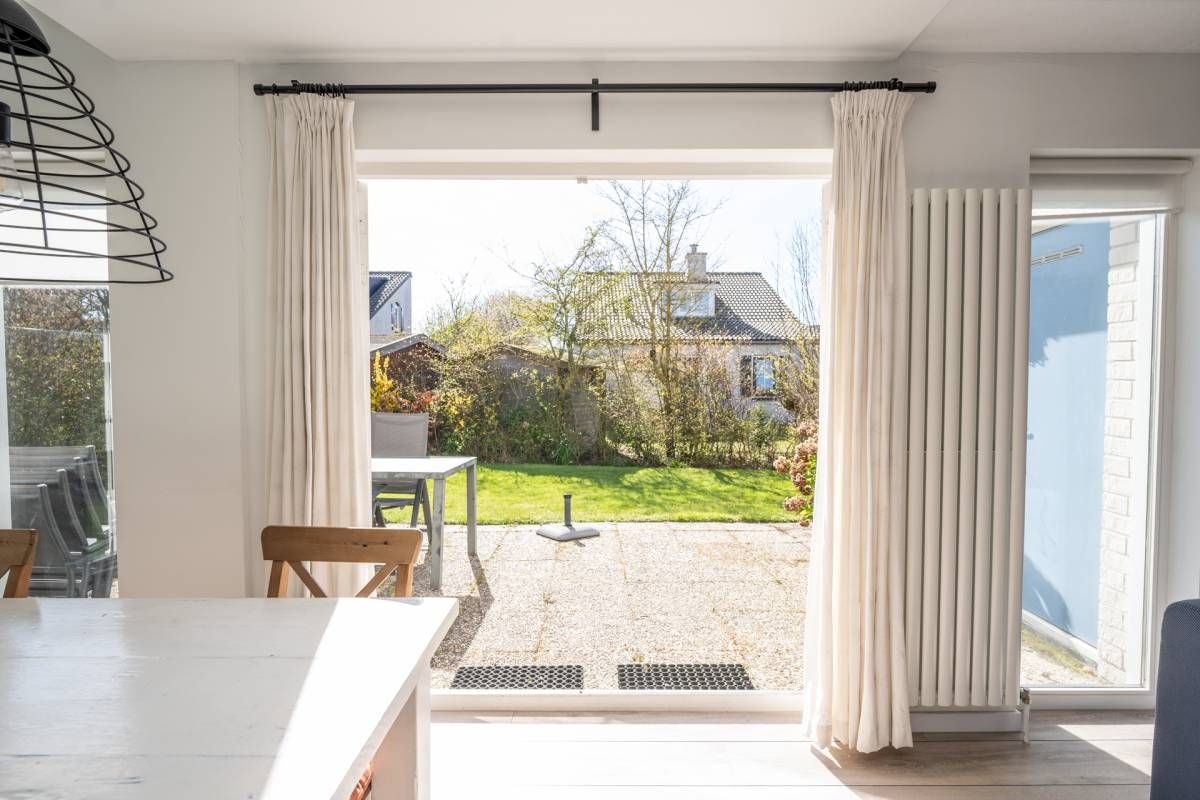 Via de openslaande deuren vloeien tuin en woonkamer moeiteloos in elkaar over en stap je zo het terras op.