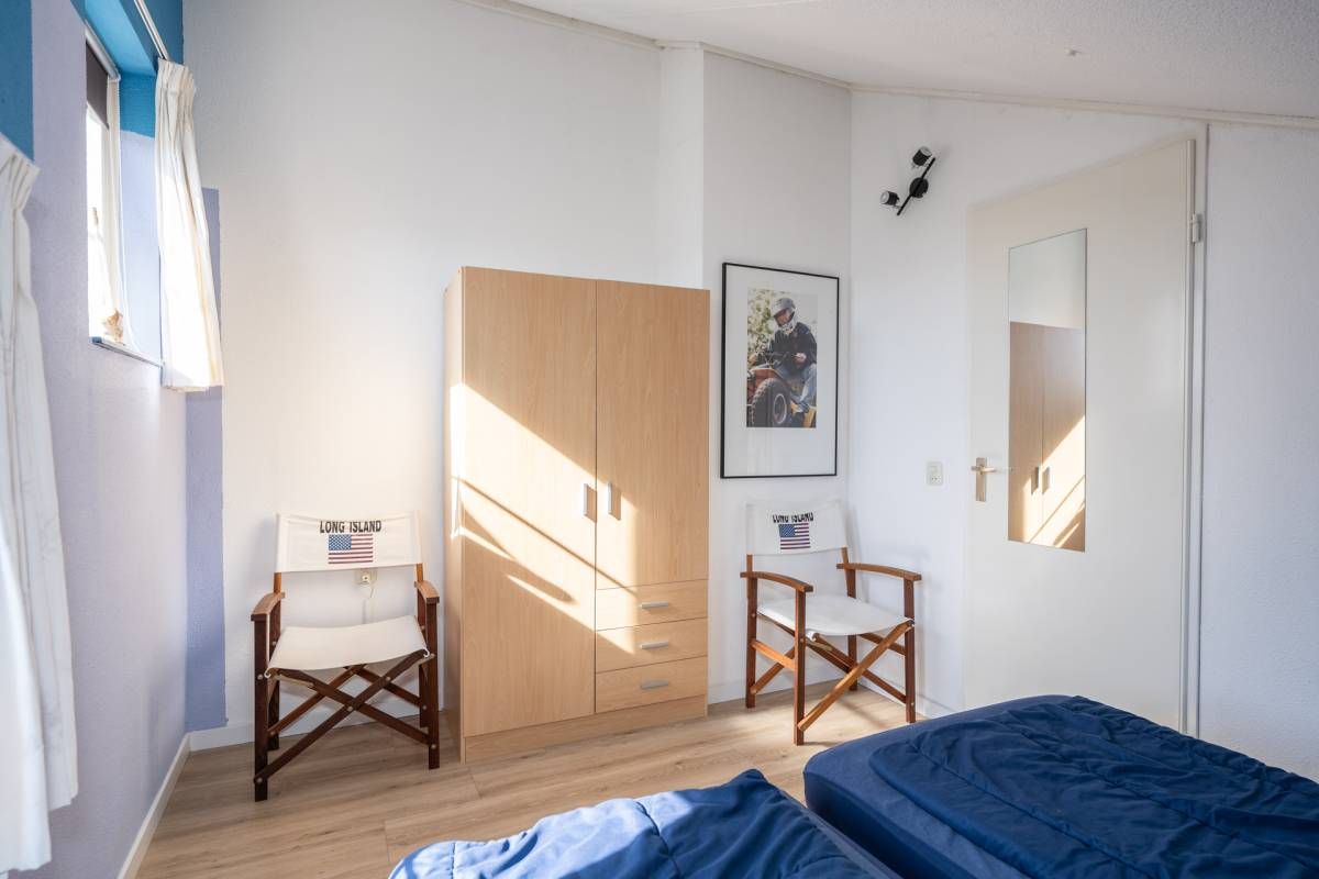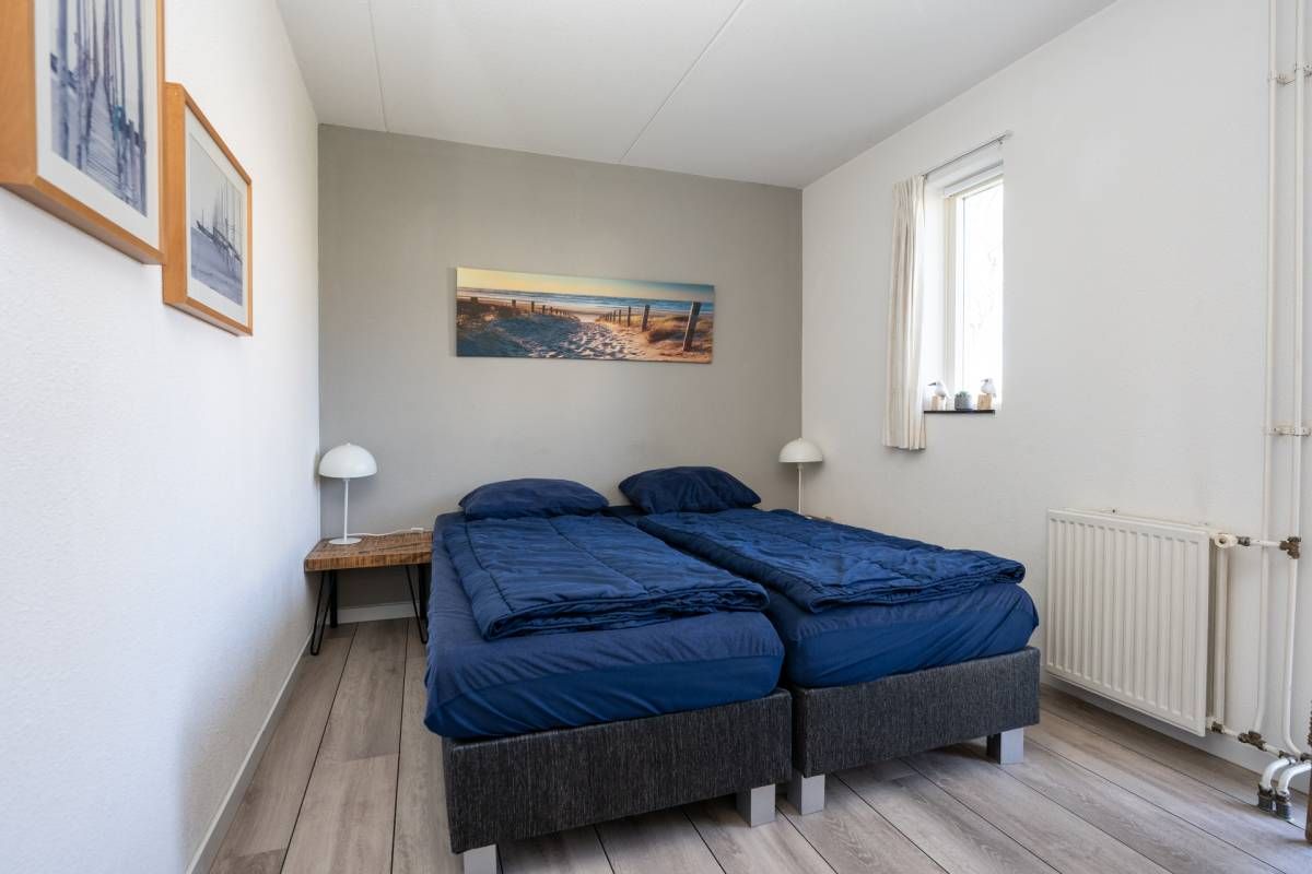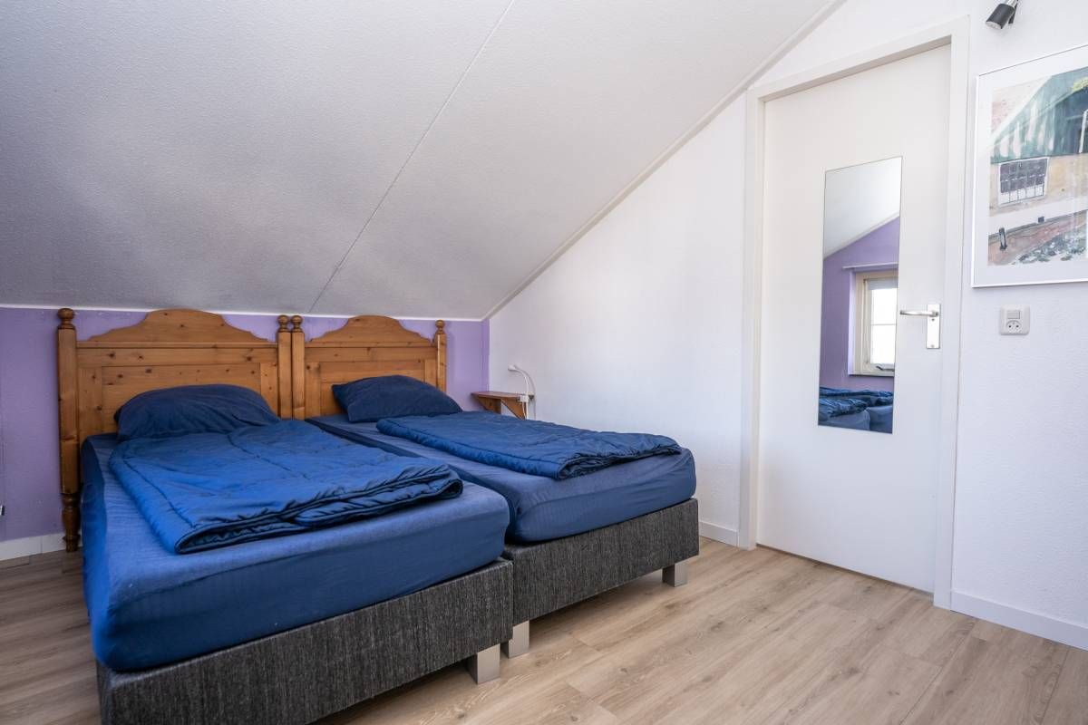Op de begane grond tref je een ruime tweepersoonsslaapkamer aan voorzien van 2 eenpersoons boxspring bedden. De royale raampartijen zorgen voor een aangename lichtinval en laten je de dag beginnen met een frisse blik naar buiten.