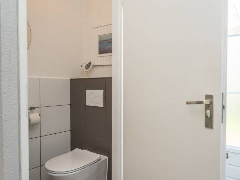 Direct naast de badkamer bevindt zich bovendien een separaat toilet, wat extra comfort biedt.