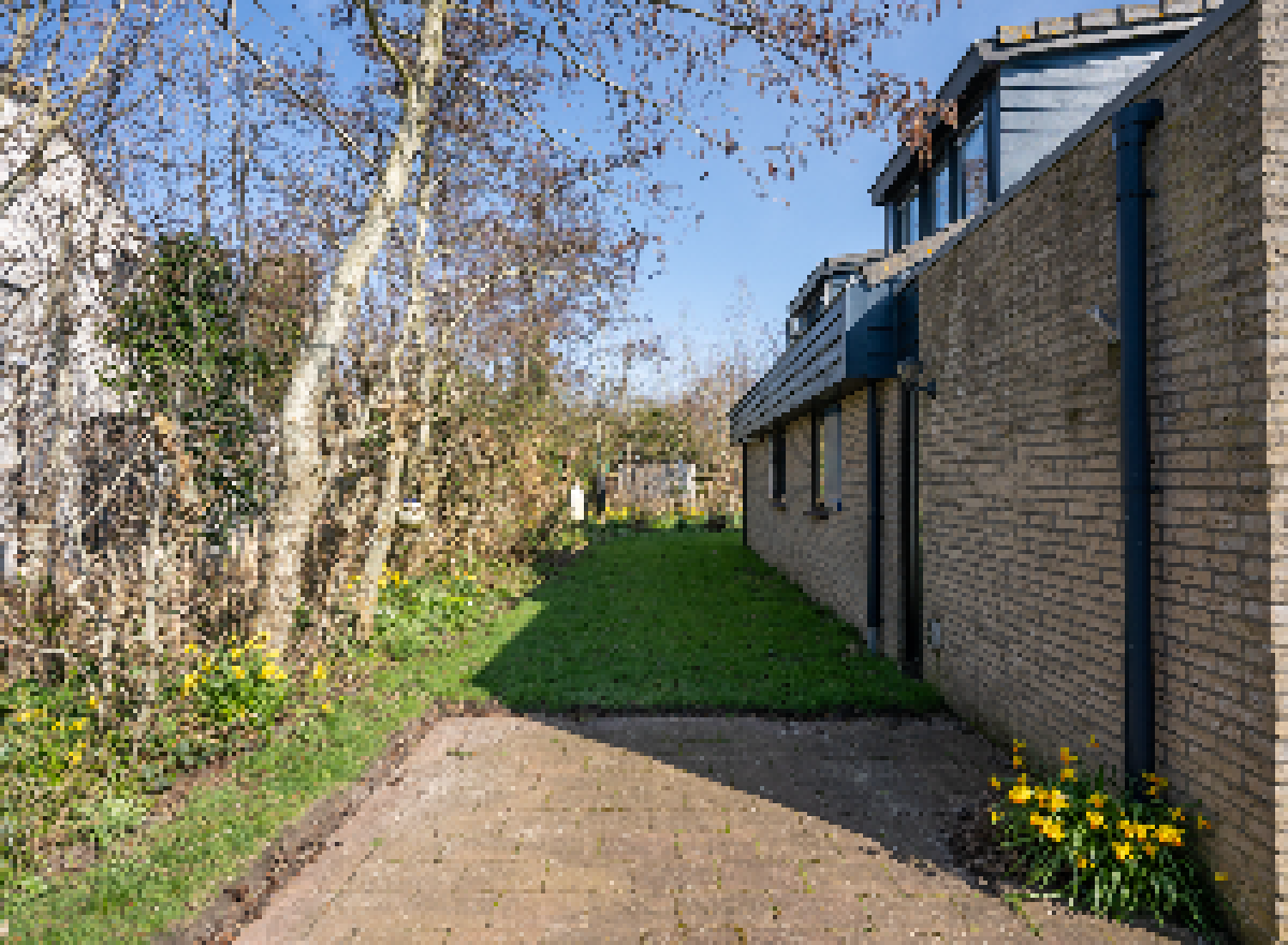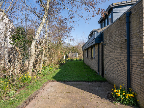 Via een poort heeft u vanuit deze patio directe toegang tot de (achter)tuin, die rondom de woning is gelegen.