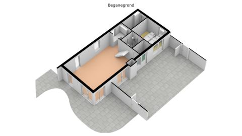 Via de voordeur komt u de woning binnen. De hal biedt u toegang tot de woonkamer, de slaapkamer op de begane grond en de badkamer.
