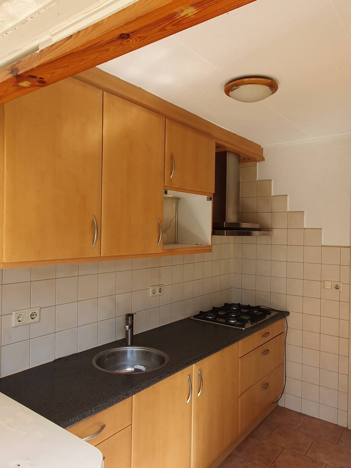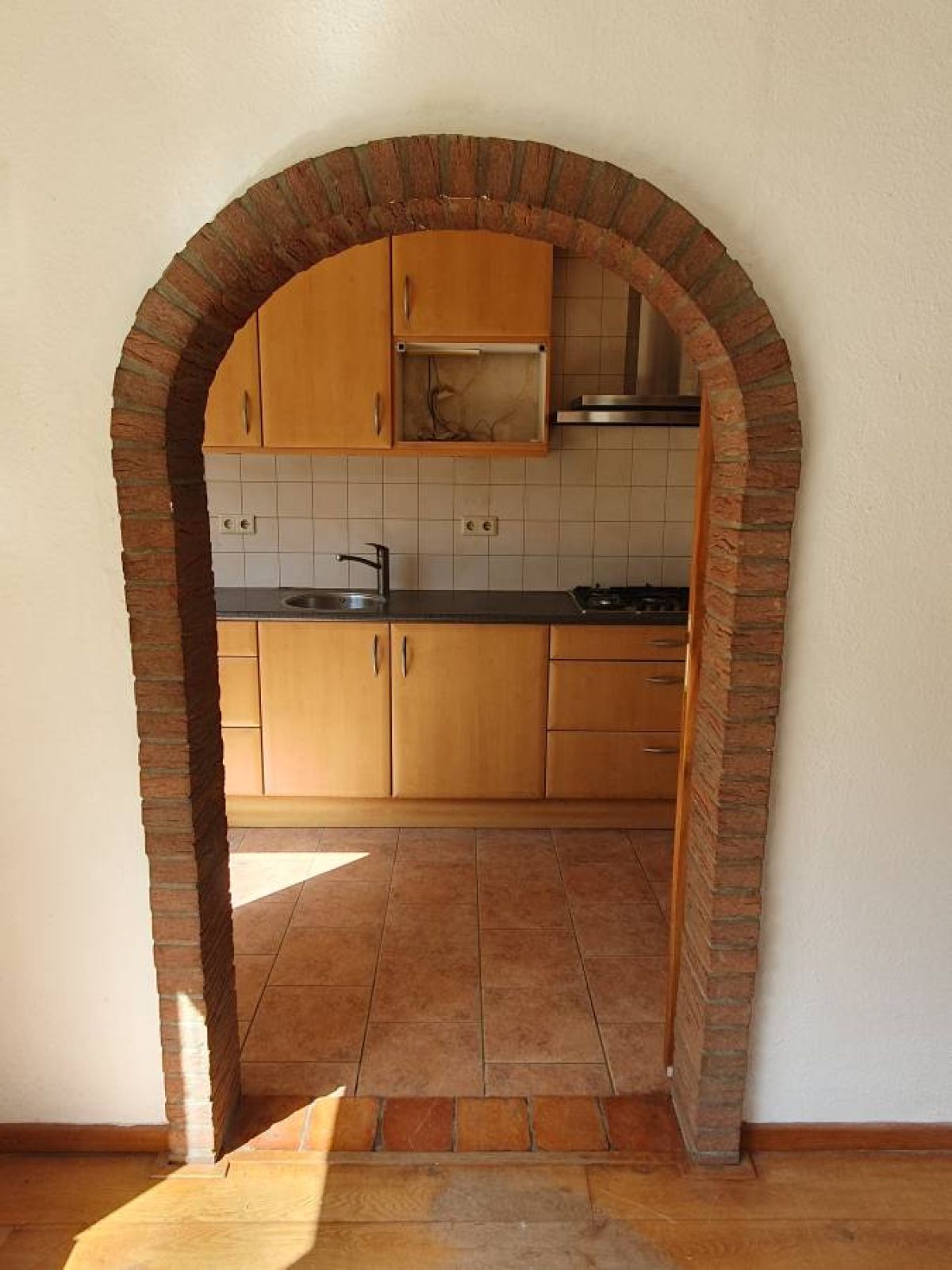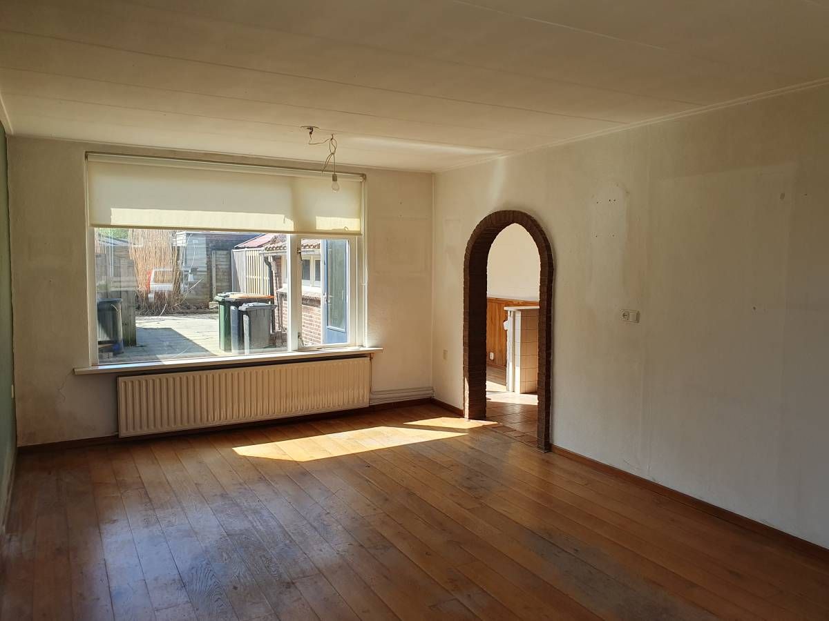 Via de entree betreedt u de hal met meterkast, toiletruimte, trapopgang en praktische trapkast. Vanuit de hal loopt u door naar de woonkamer. De woonkamer is voorzien van houten vloerdelen en heeft een prettige lichtinval dankzij de aanwezige raampartijen. Aansluitend aan de woonkamer bevindt zich de halfopen keuken, welke eenvoudig is uitgevoerd en voorzien van enkele basisapparatuur.