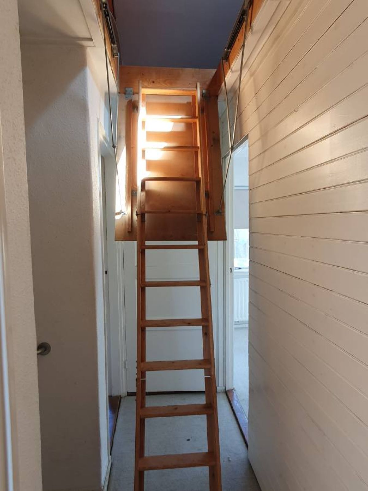Middels een vlizotrap bereikt u de tweede verdieping. Deze verdieping doet dienst als praktische bergruimte en is voorzien van een dakraam. Tevens bevindt zich hier de opstelling van de HR CV-ketel uit 2025.