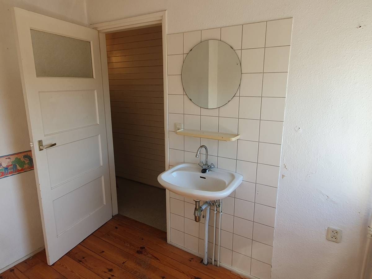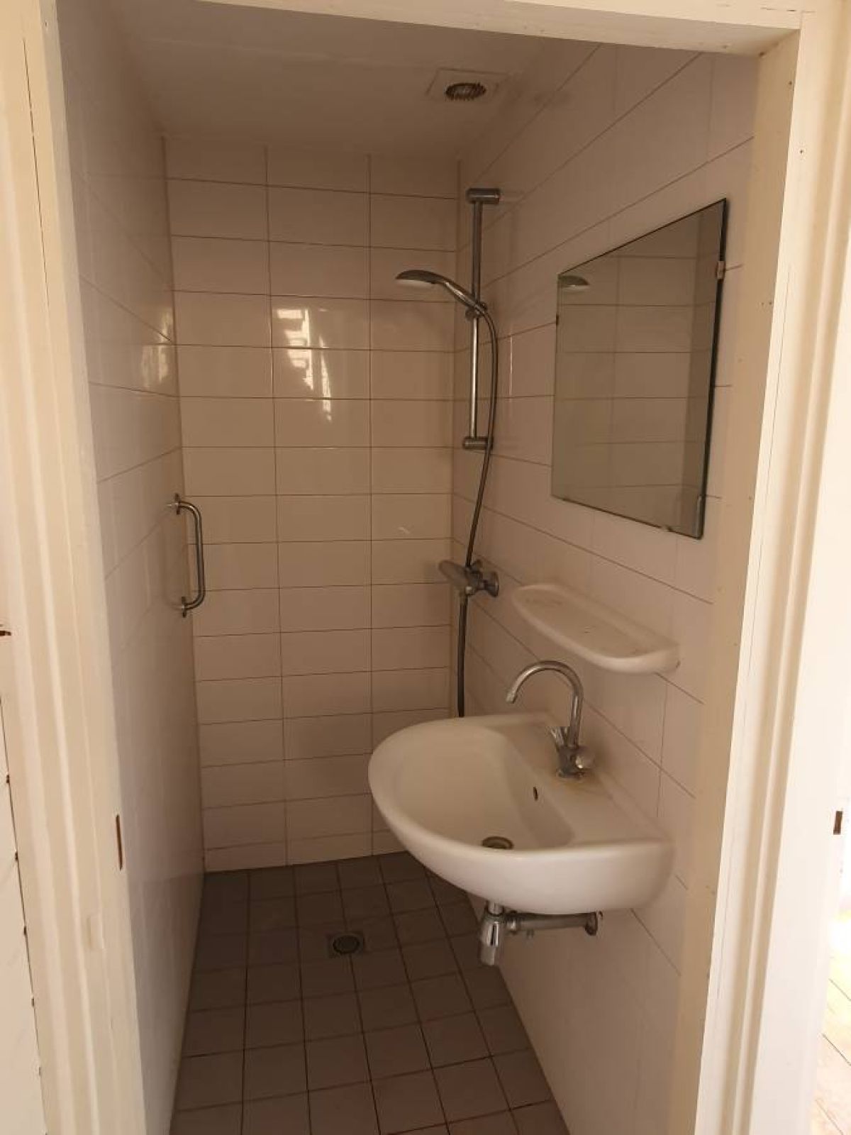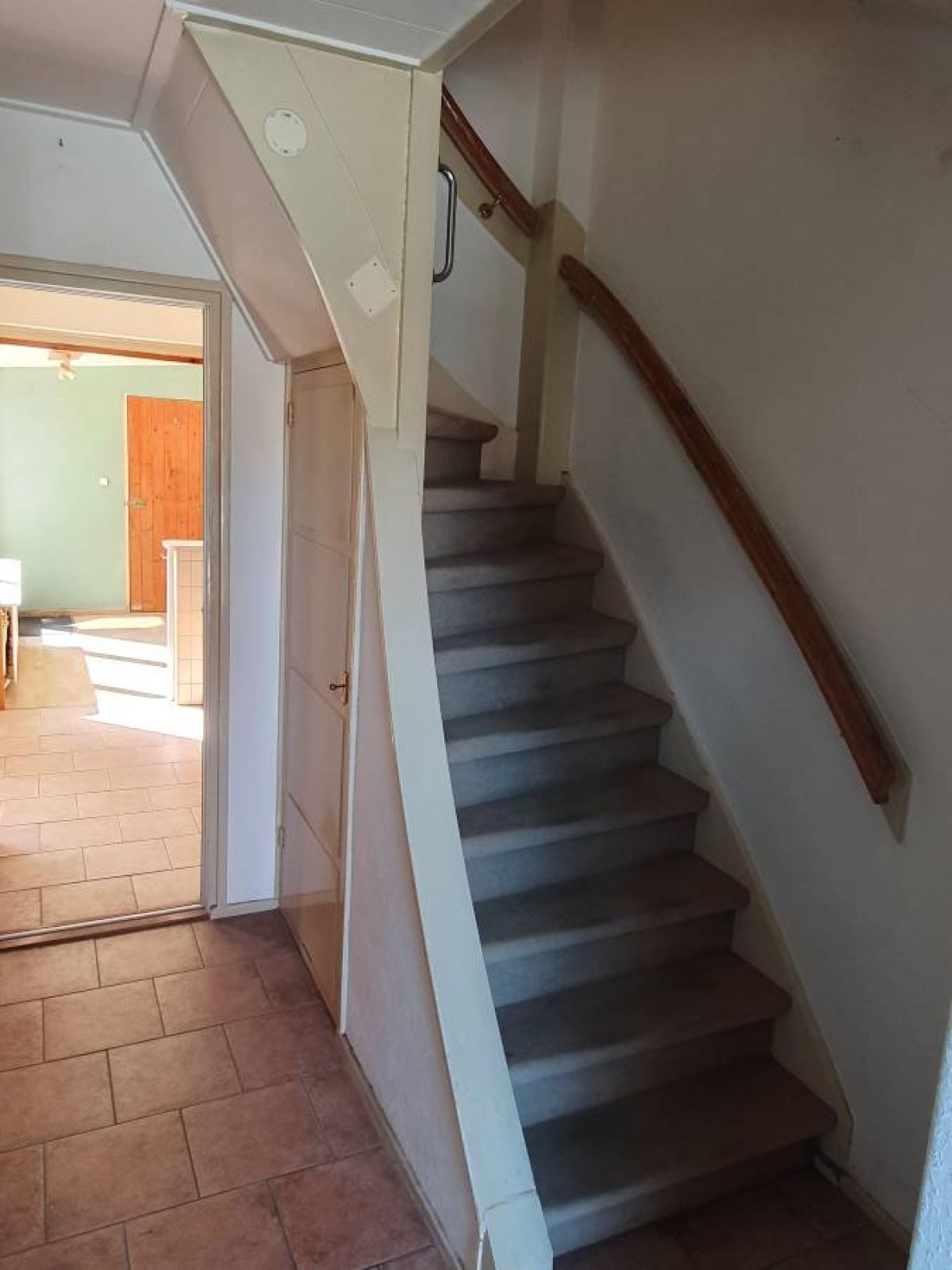 In de hal de trapopgang naar de verdieping. Via de overloop heeft u toegang tot vier slaapkamers en de badkamer. De slaapkamers variëren in grootte, waarbij twee kamers compacter zijn van opzet en één kamer ruimer (twee aaneengesloten ruimtes). De eenvoudige doucheruimte is volledig betegeld en voorzien van douche en wastafel.
