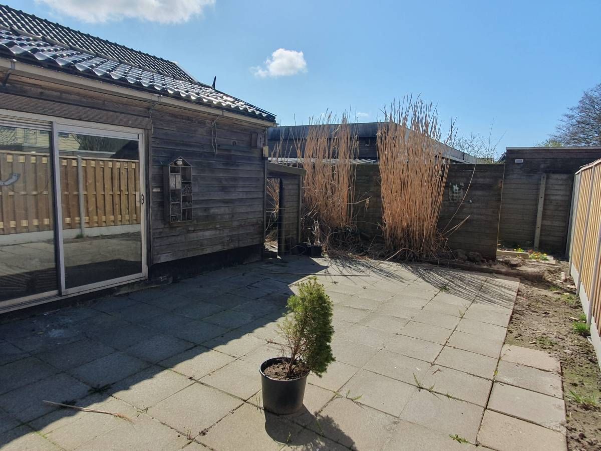 De achtertuin biedt een prettige ruimte, maar vraagt om enige aandacht en onderhoud.