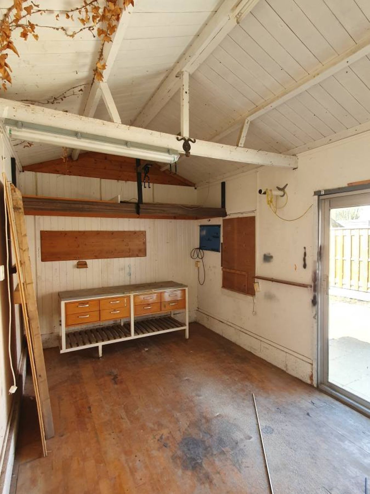 Aan de zijkant bevindt zich een vrijstaande schuur, ideaal als klusruimte, opslag of fietsenstalling. Parkeren op eigen terrein is een pré.