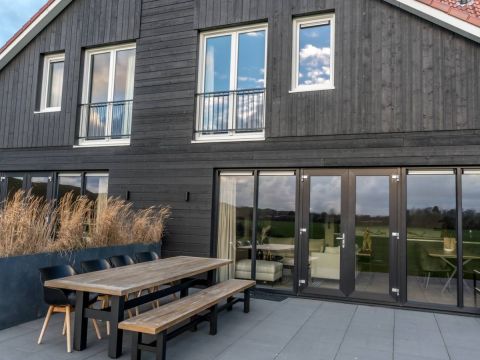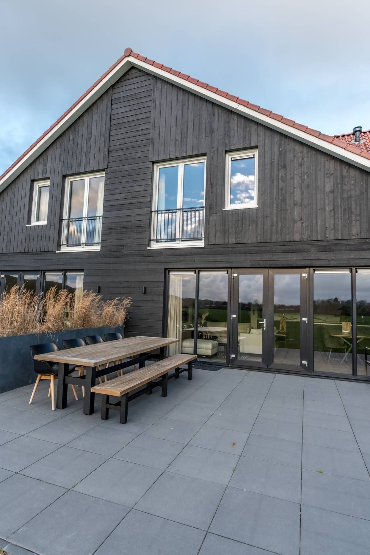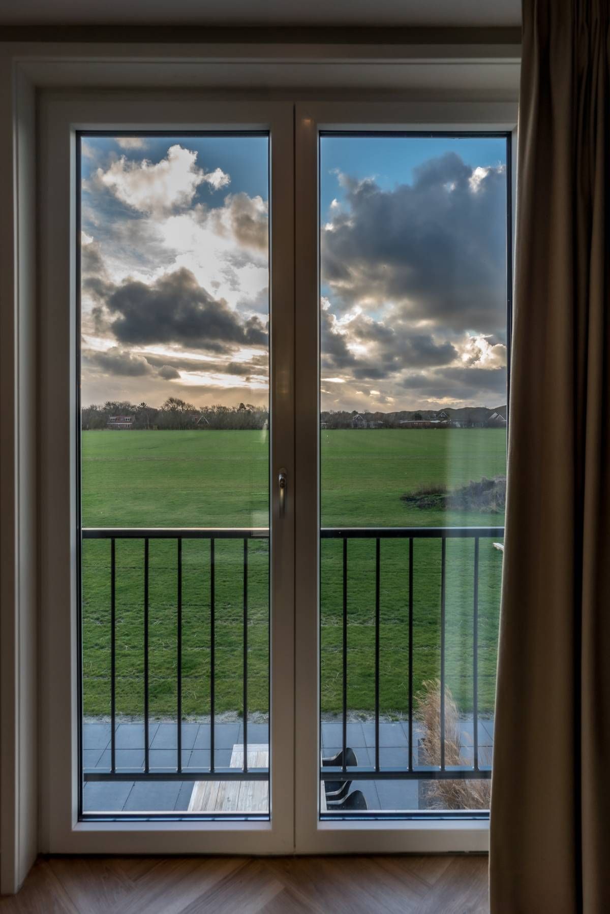 Tuindeuren naar het terras met wijds uitzicht over de Texelse landerijen