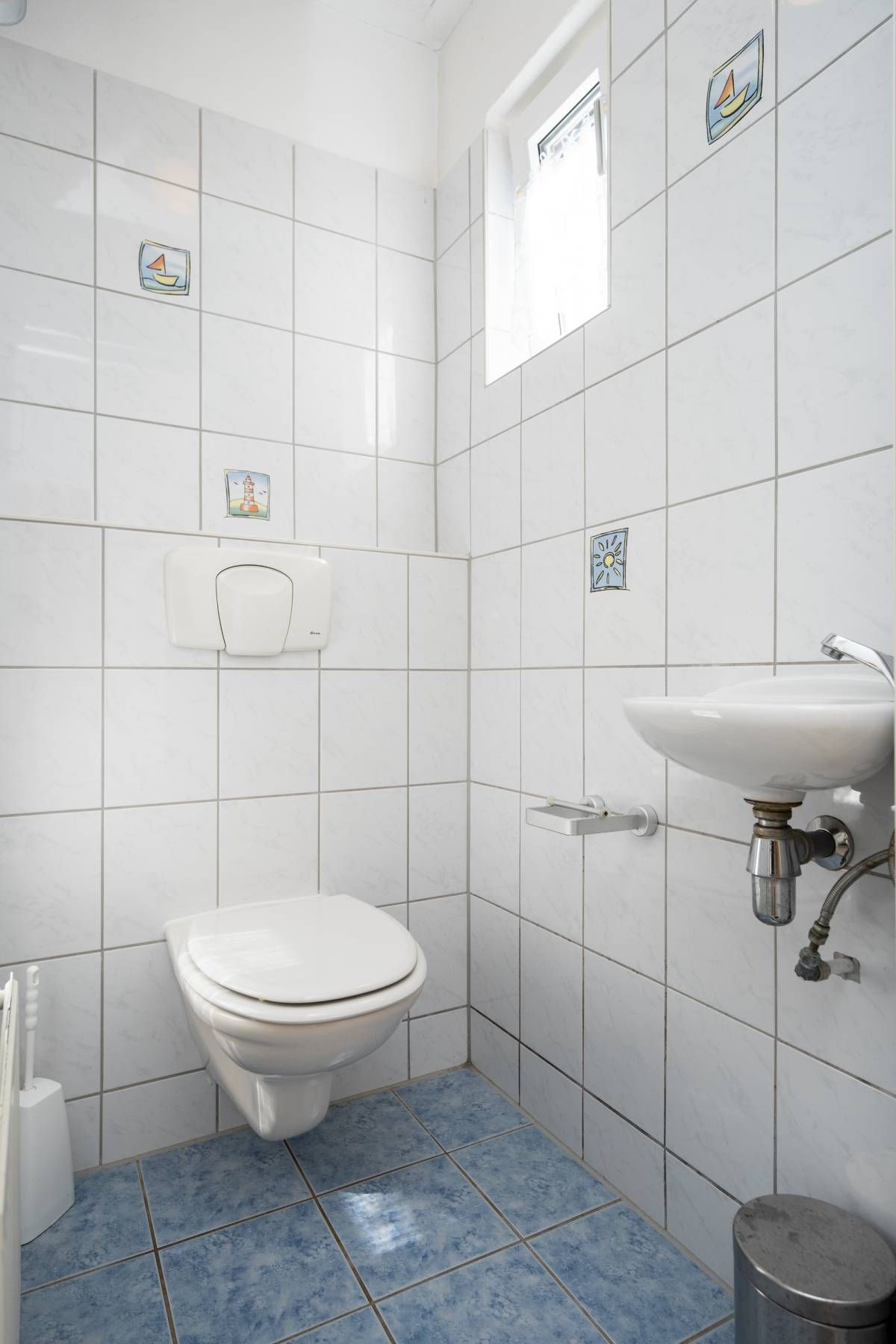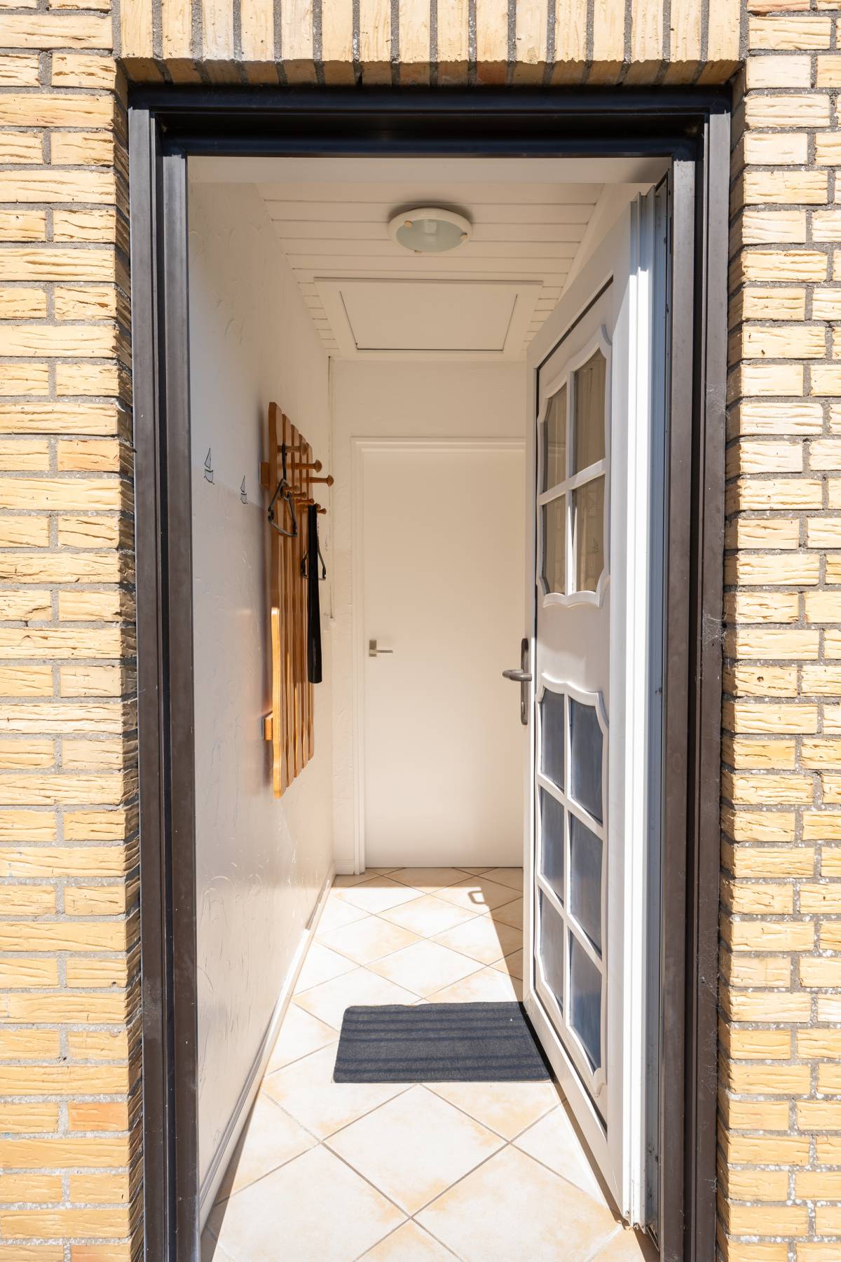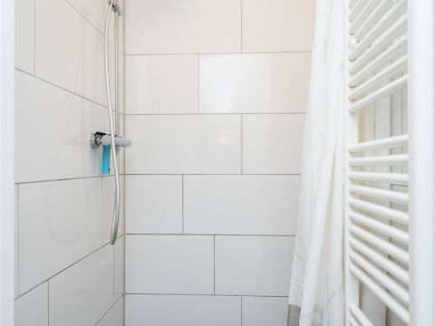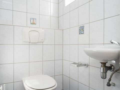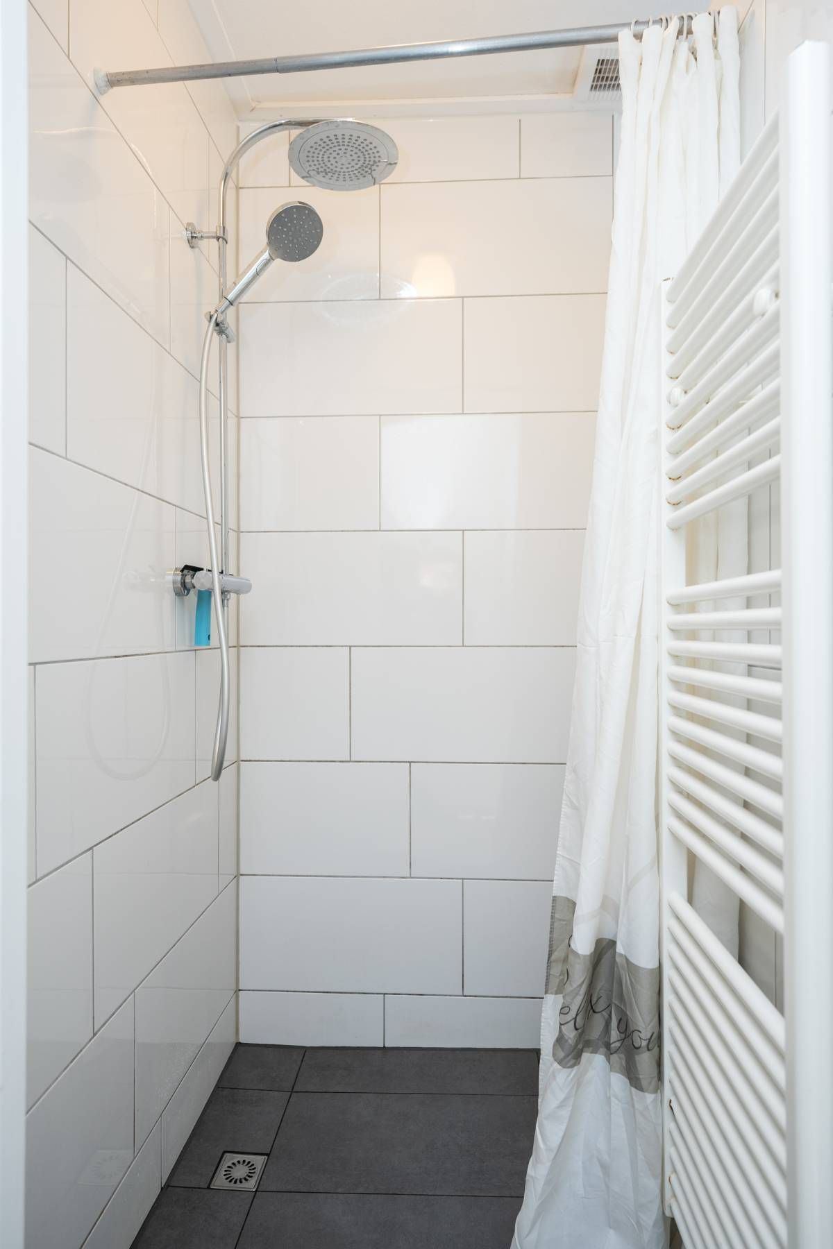 U komt binnen in de hal met een modern, vrijhangend toilet. Vanuit de hal heeft u toegang tot de badkamer met douche en de sfeervolle woonkamer. De lichte woonkamer is afgewerkt met een plavuizen vloer en biedt via openslaande deuren direct toegang tot het zonnige terras en de heerlijke tuin.