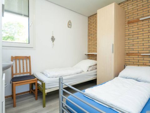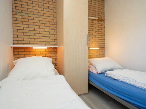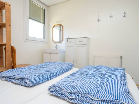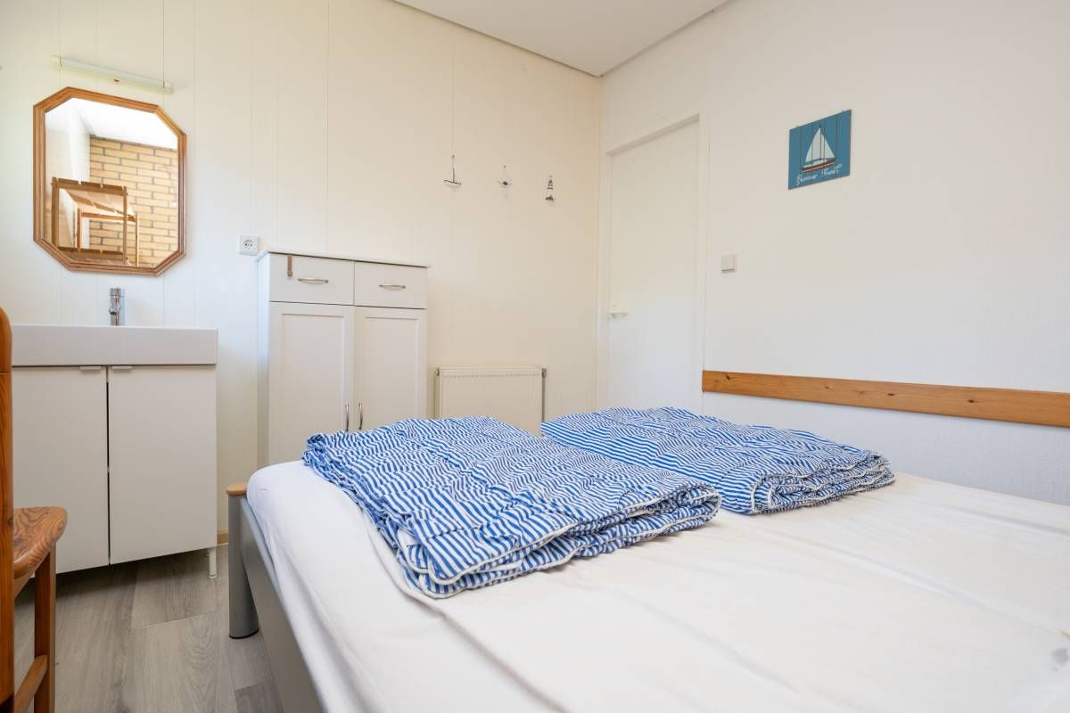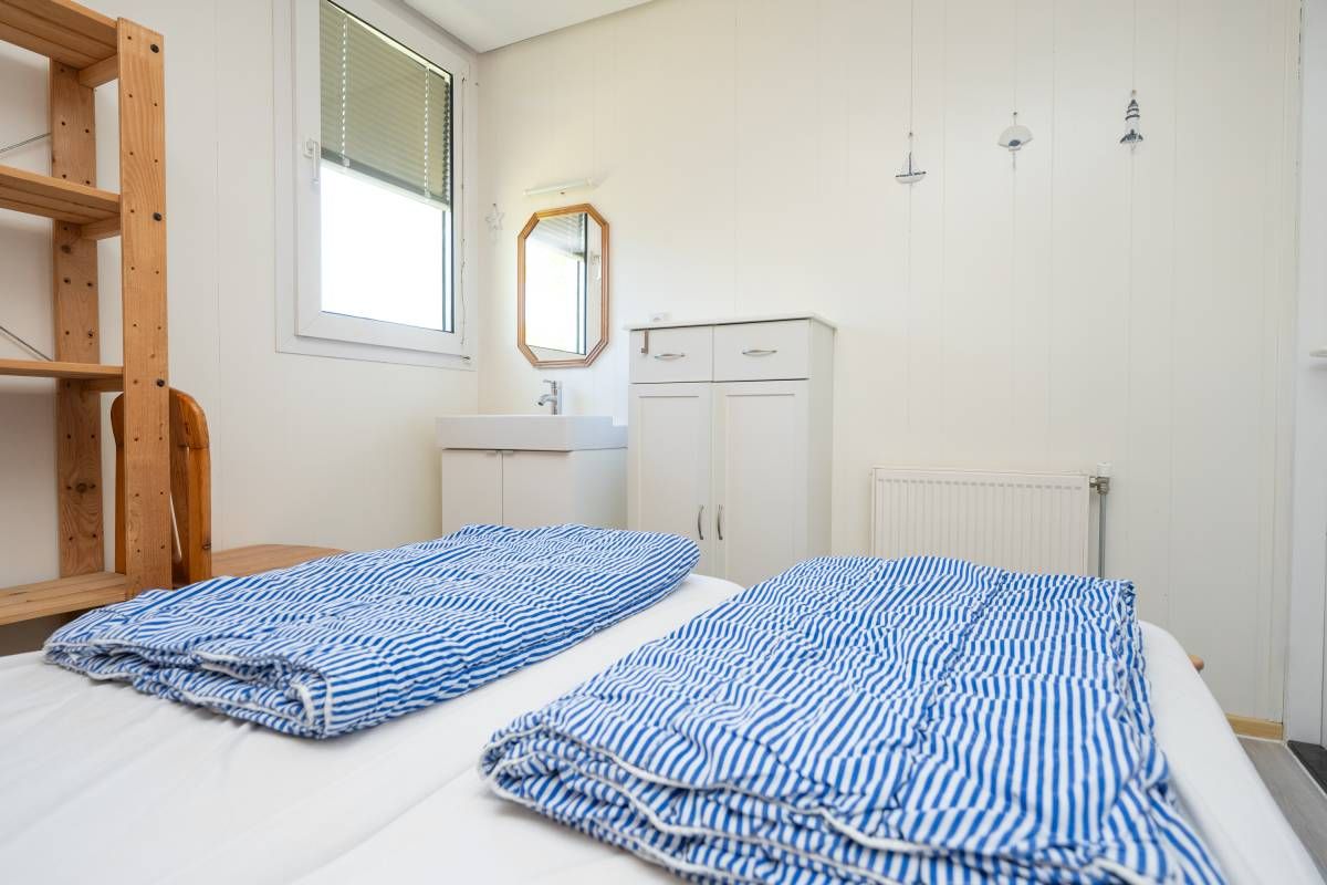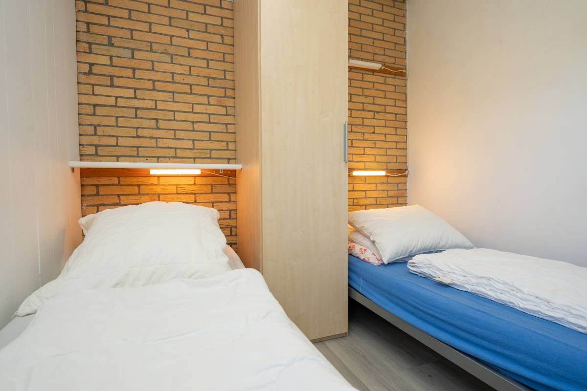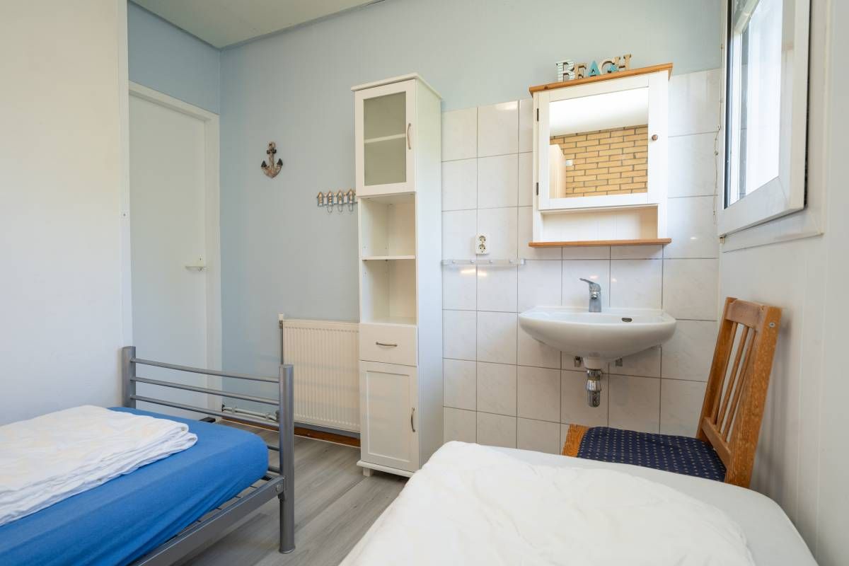 Deze leuke recreatiewoning beschikt over 3 fijne slaapkamers, 2 tweepersoons slaapkamers en een 1 eenpersoons slaapkamer. De slaapkamers zijn alle drie via de woonkamer te bereiken, hebben voldoende kast/bergruimte en zijn allen voorzien een eigen wastafelmeubel.