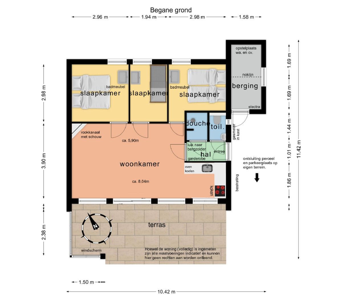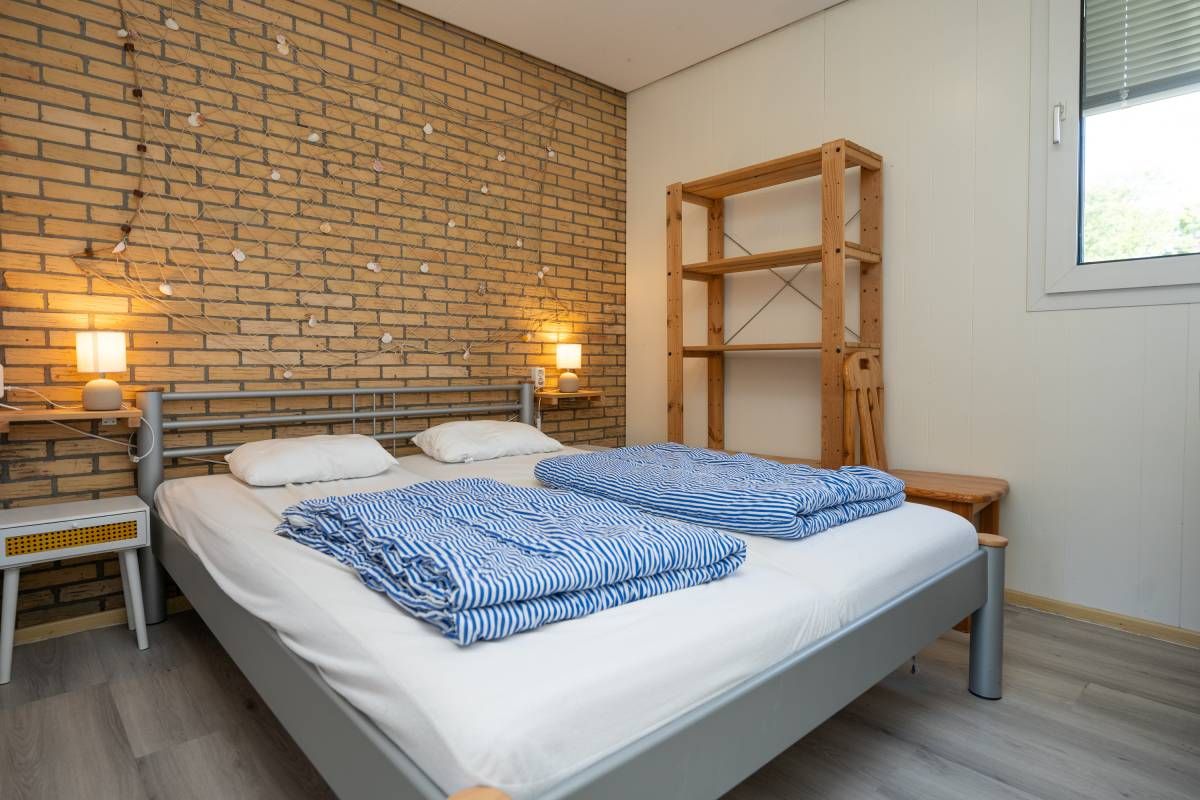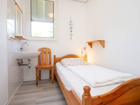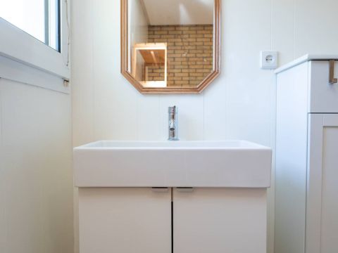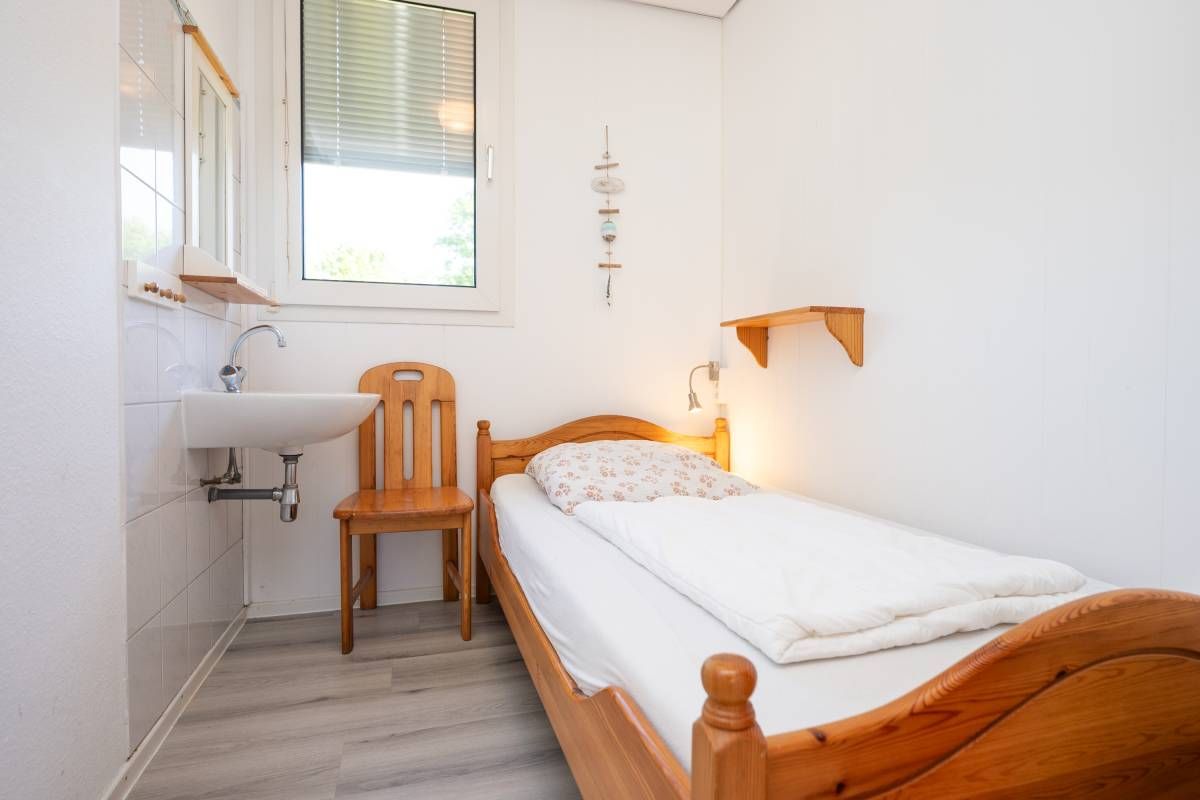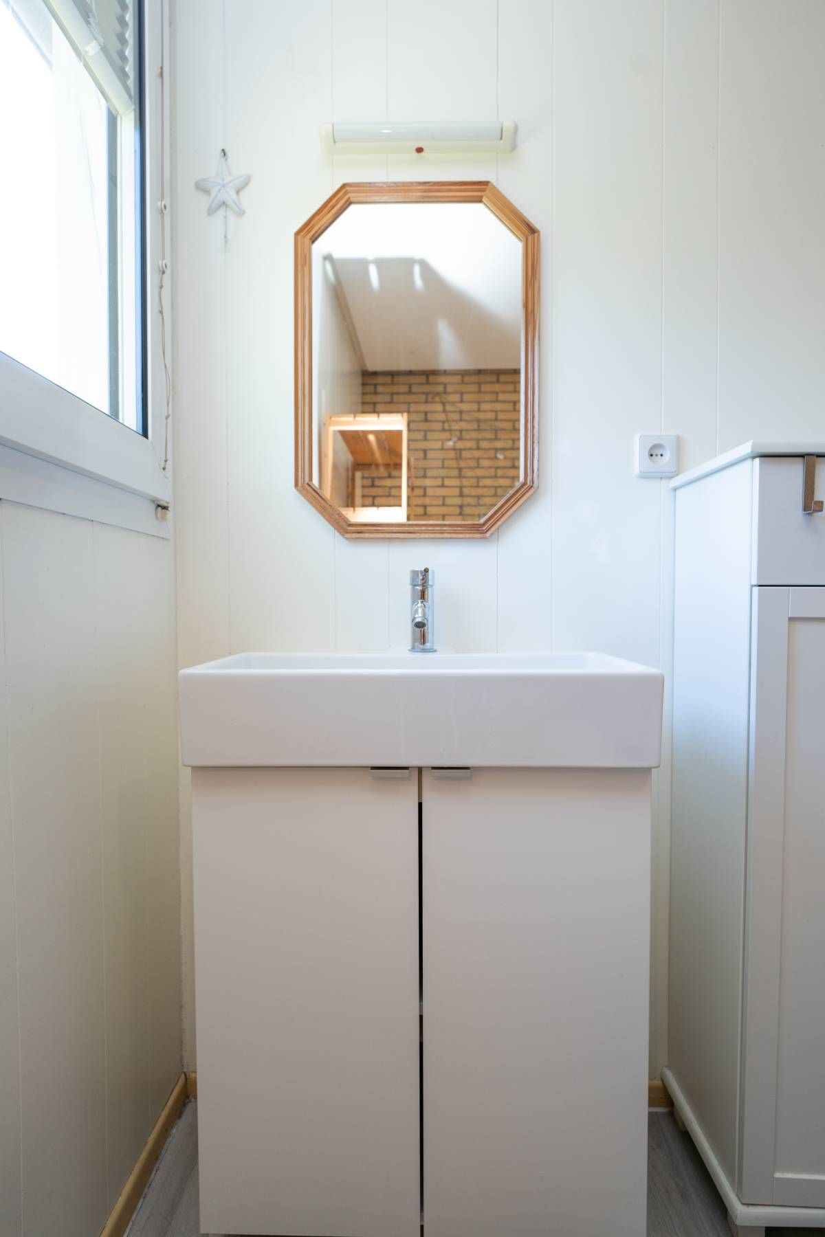 Deze leuke recreatiewoning beschikt over 3 fijne slaapkamers, 2 tweepersoons slaapkamers en een 1 eenpersoons slaapkamer. De slaapkamers zijn alle drie via de woonkamer te bereiken, hebben voldoende kast/bergruimte en zijn allen voorzien een eigen wastafelmeubel.