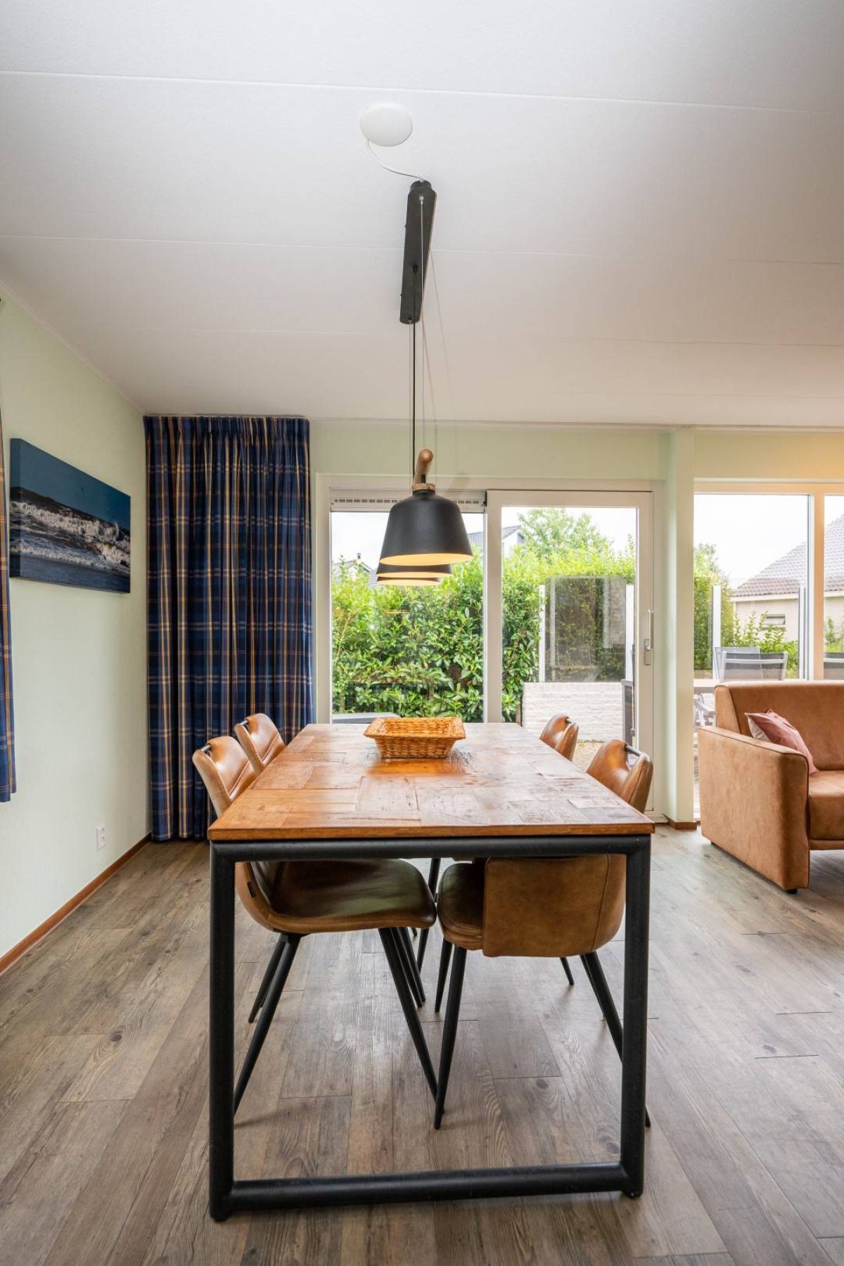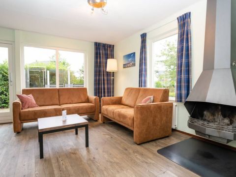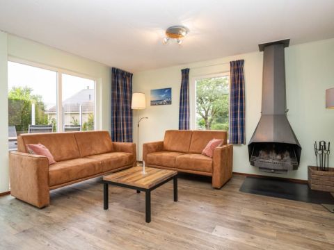 De woonkamer heeft mooie grote raampartijen waardoor het er heerlijk licht is. De woonkamer beschikt over een eet- en zithoek met sfeervolle openhaard. Middels de schuifpui toegang tot het terras en de tuin.