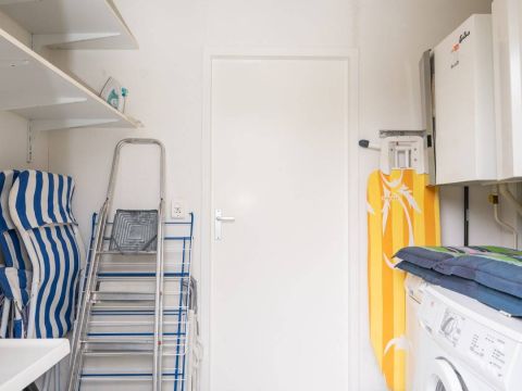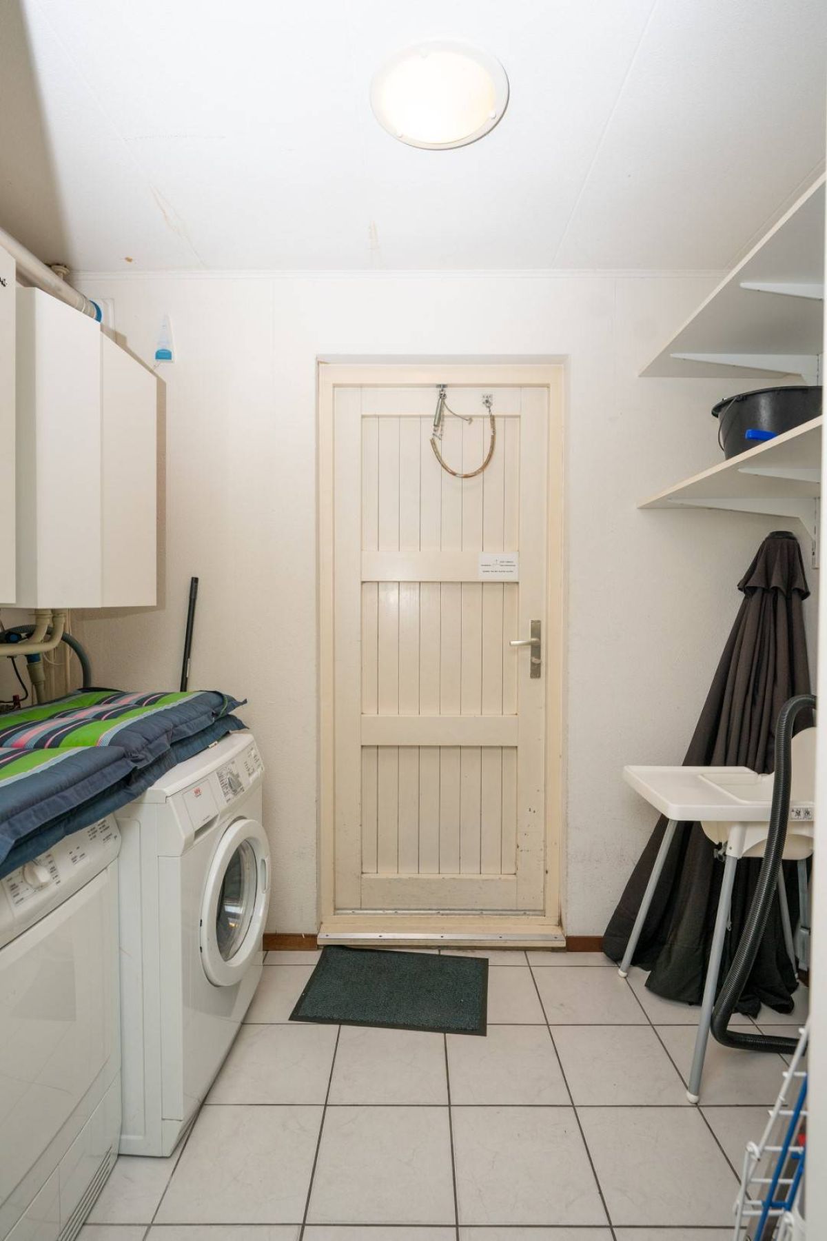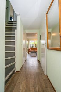 In de hal bevindt zich het separate toilet en de berging welke overigens ook buitenom bereikbaar is. In de berging vindt u de opstelling voor wassen/drogen én de CV-ketel.