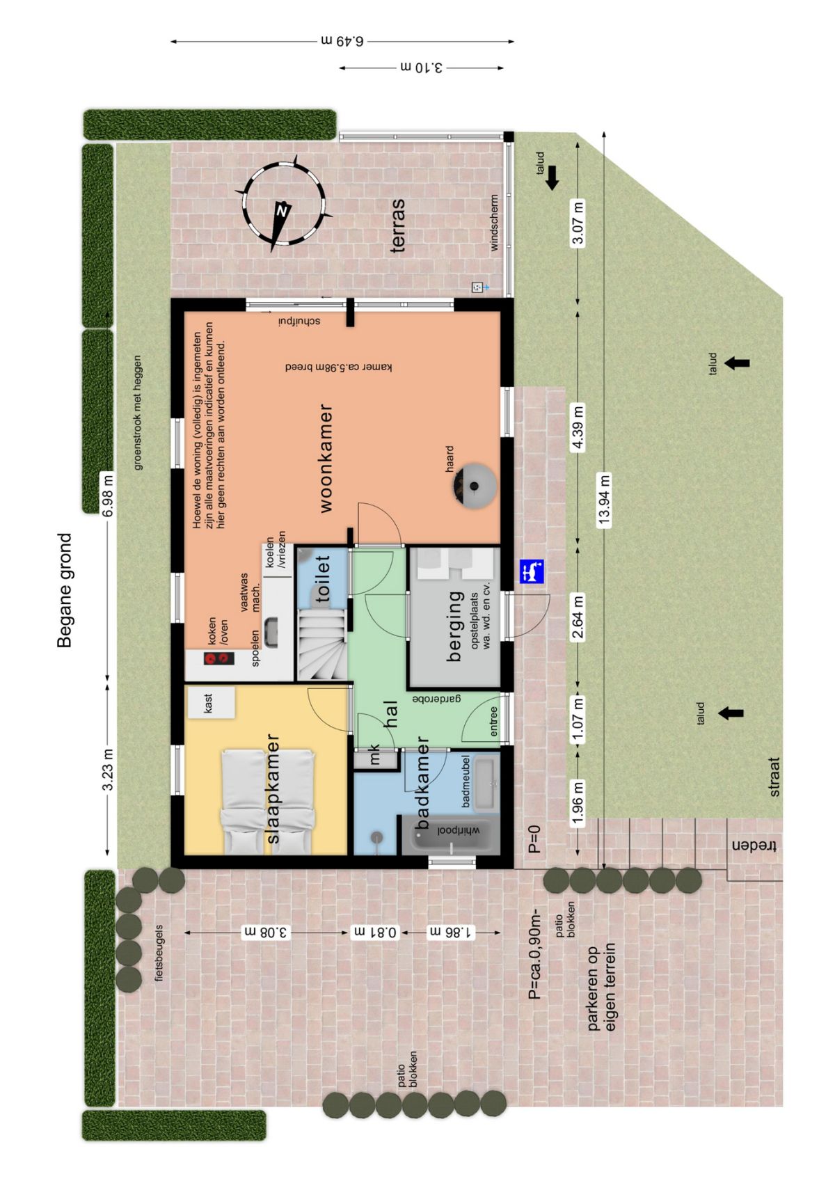Indeling: U komt de woning binnen via de entree aan de voorzijde. Allereerst de hal met trapopgang en meterkast. Vanuit de hal toegang tot de gezellige en zonnige woonkamer met keuken, slaapkamer, badkamer, toilet en berging.