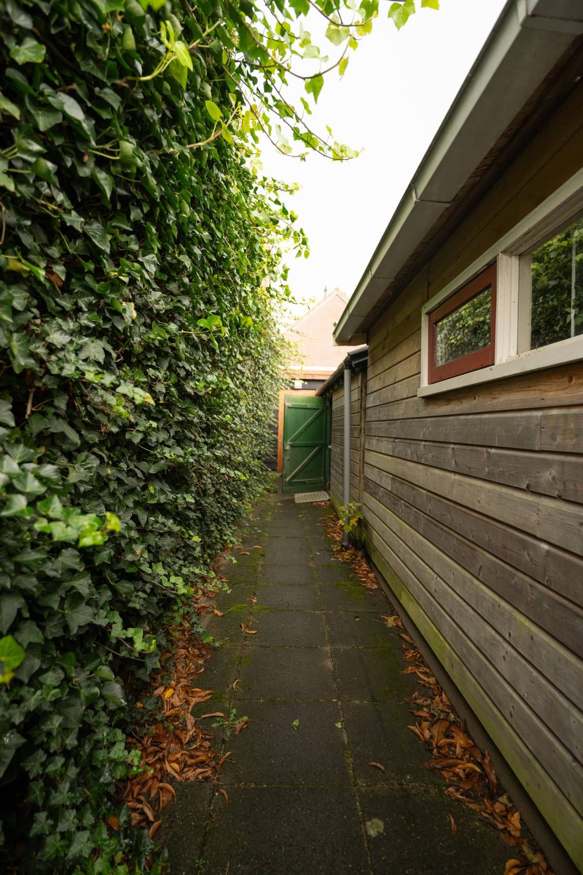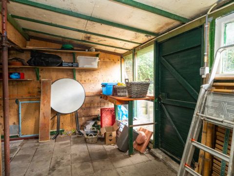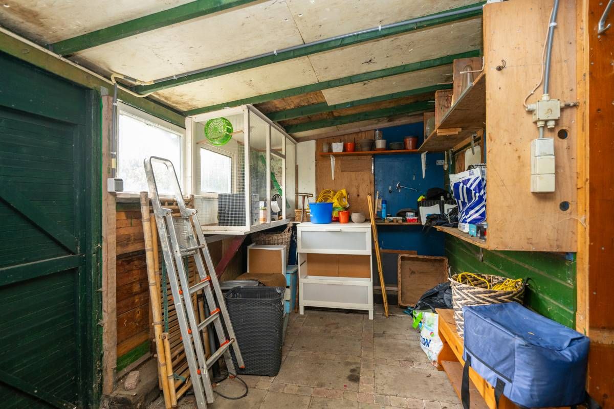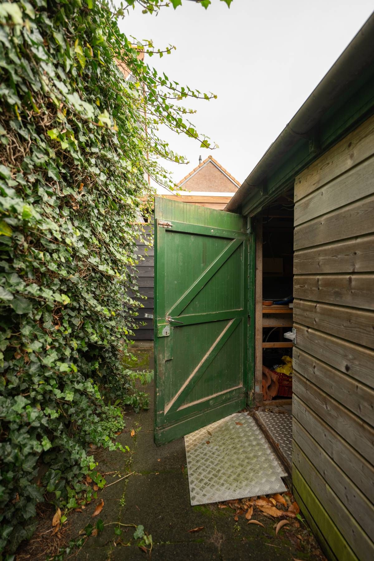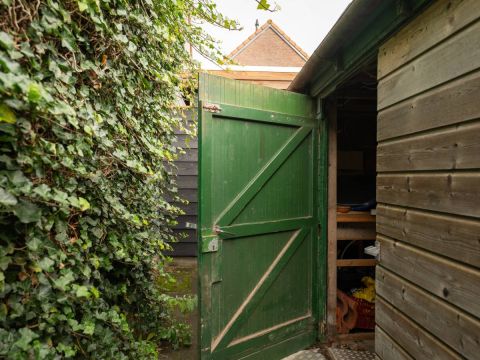 De schuur is ideaal voor al je gereedschap en tuinspullen. Via een poort is de woning ook achterom bereikbaar.