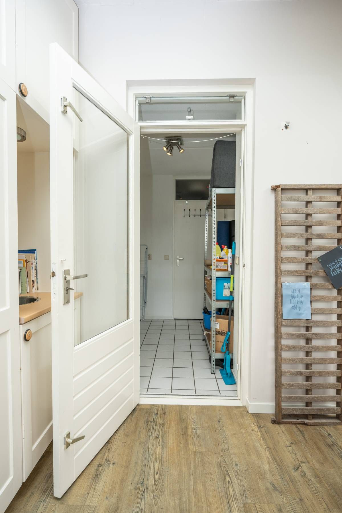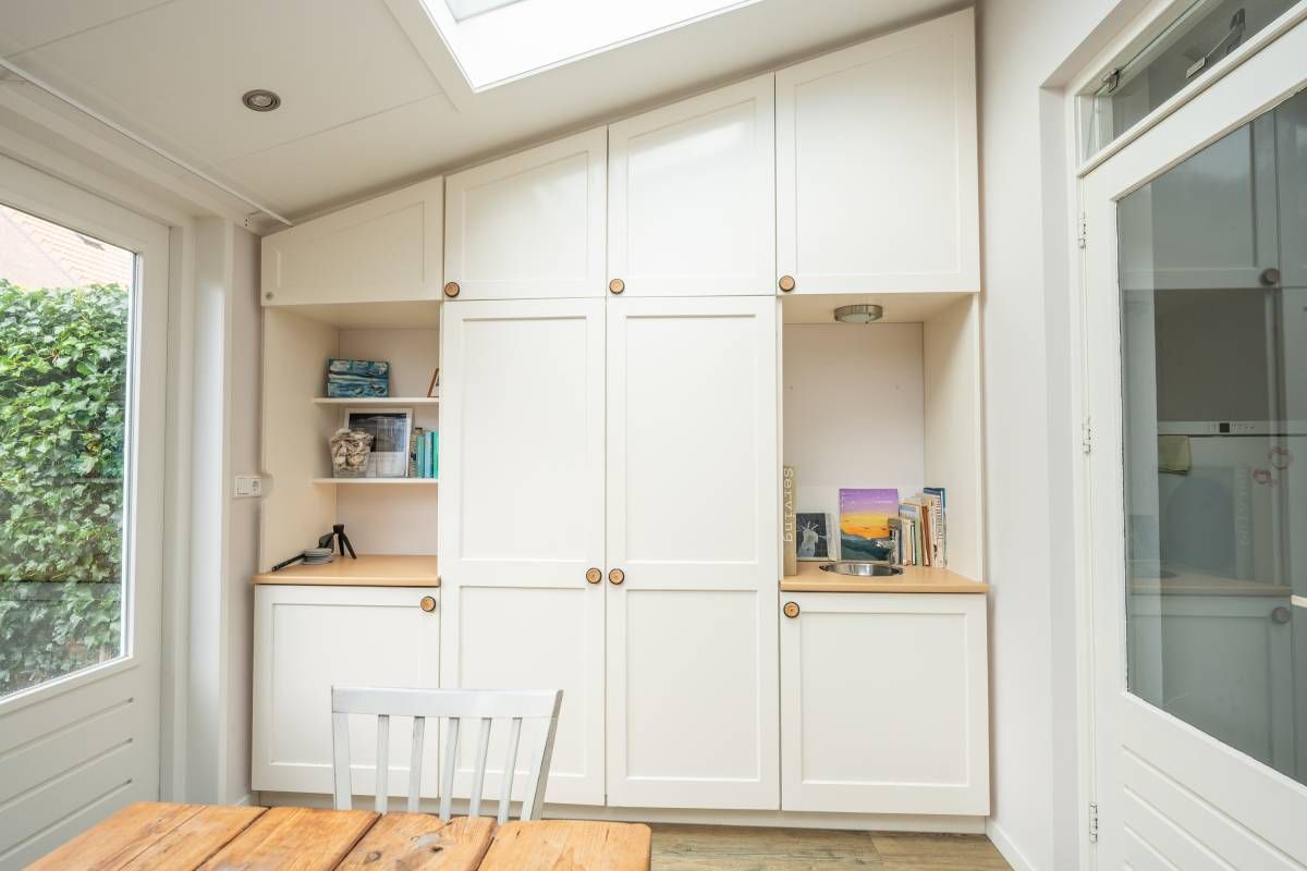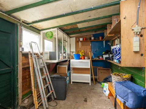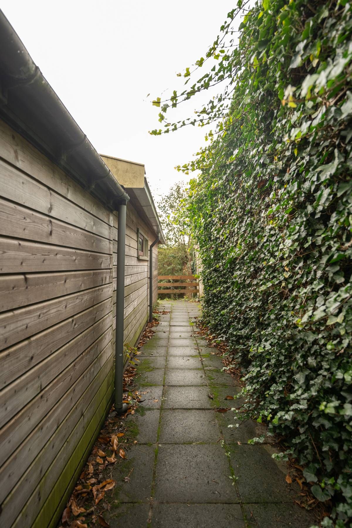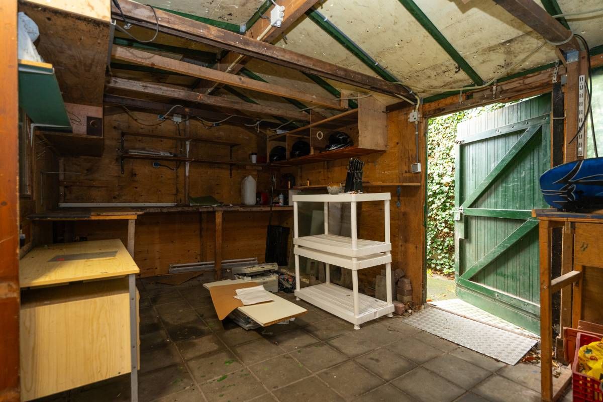 De schuur is ideaal voor al je gereedschap en tuinspullen. Via een poort is de woning ook achterom bereikbaar.